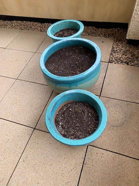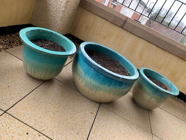 Set of 3 outdoor planters, been on balcony so very much protected from weather. Immaculate condition.