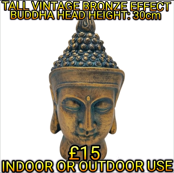 Tall Vintage Rustic Bronze Effect Buddha Head Statue. Height: 30cm