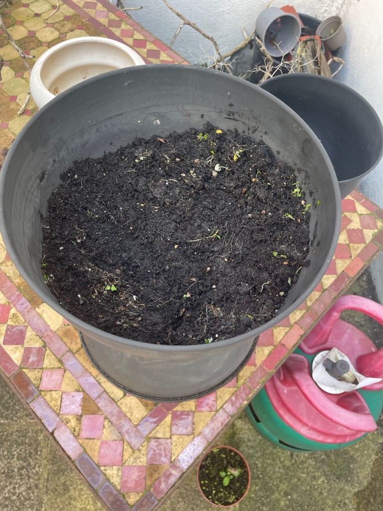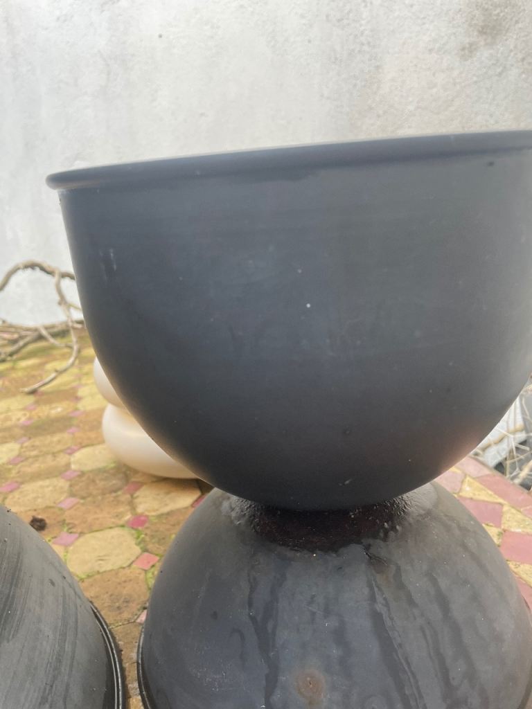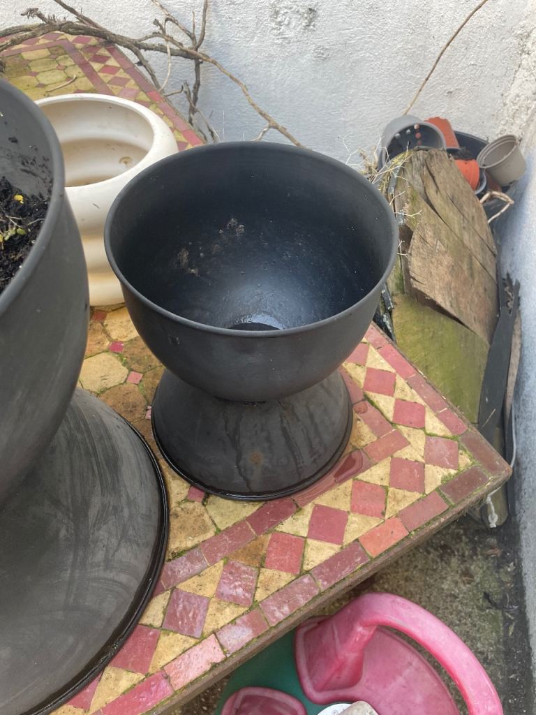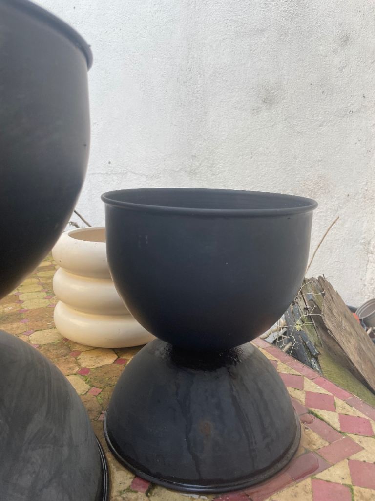 Two black metal plant pots. From dunelm. The large one is in good condition but the smaller one had rust around the middle hence the price.