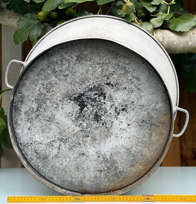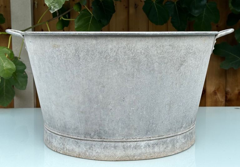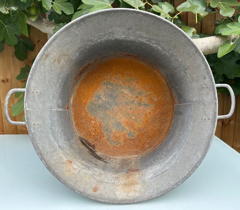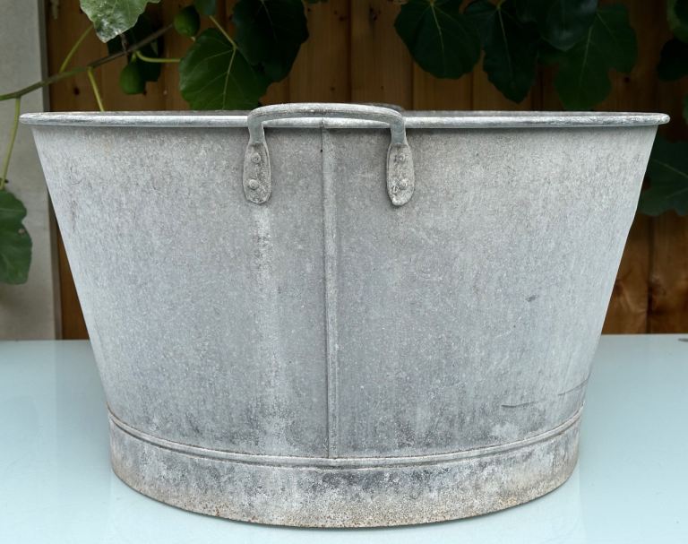 A vintage French galvanised wash tub, dolly tub, tin bath dating to the 1930s, it’s a quality piece, larger and heavier than others I’ve seen and particularly well constructed with strong handles.