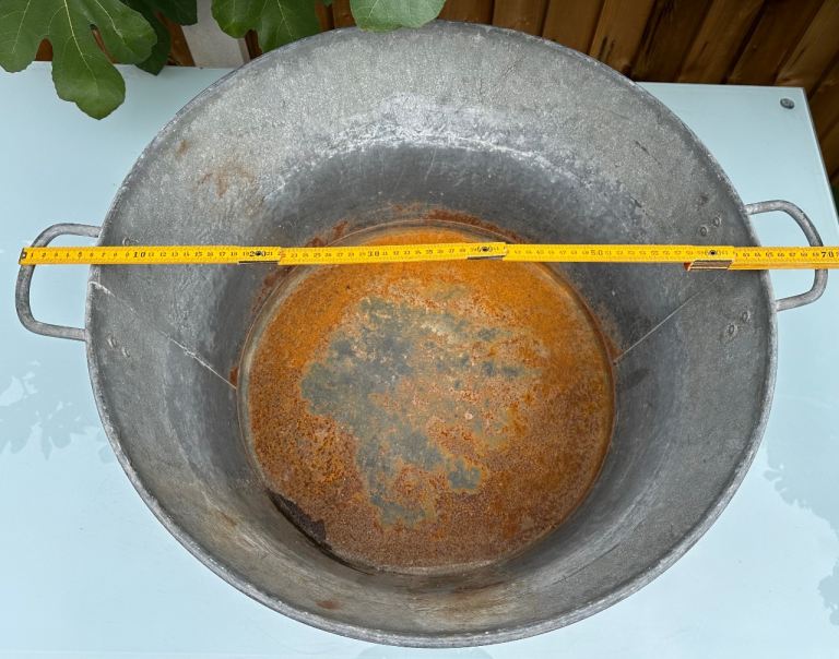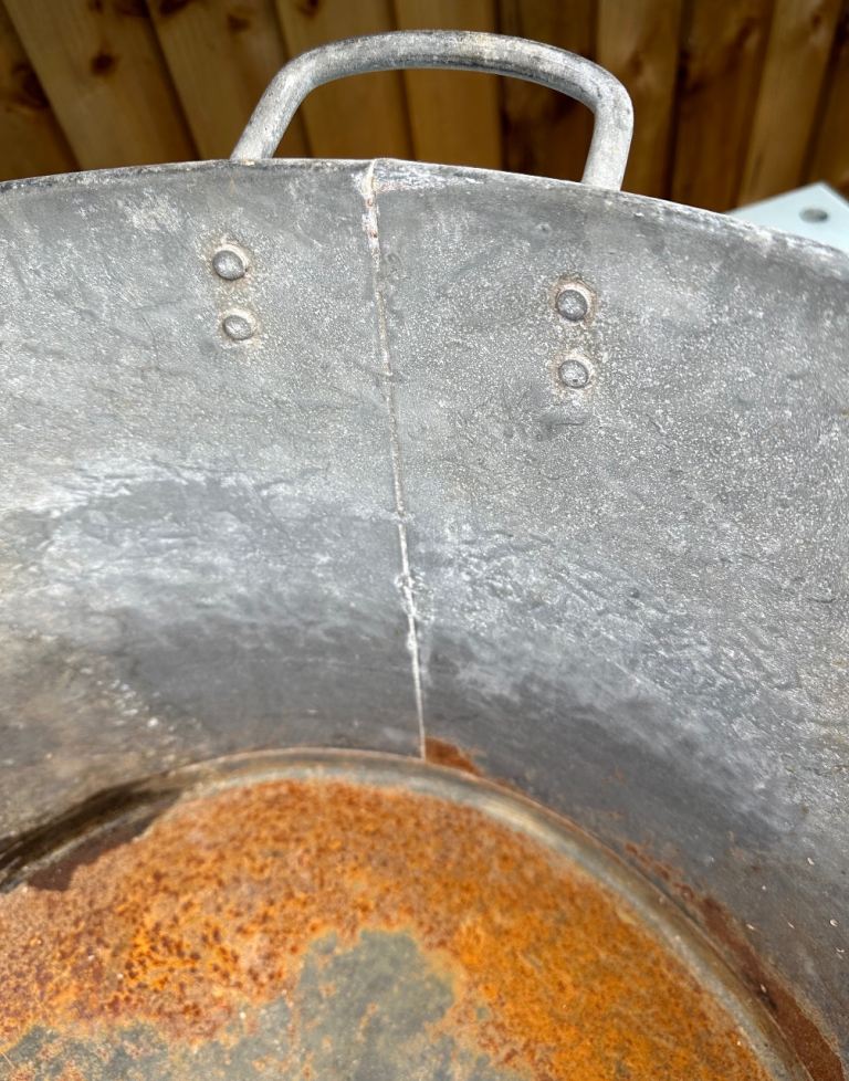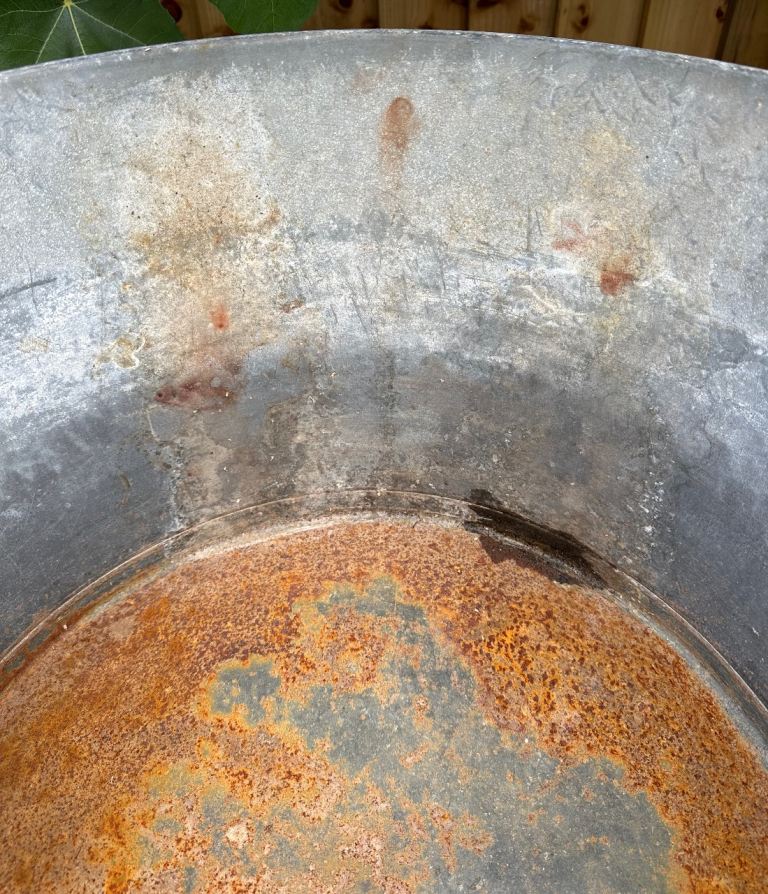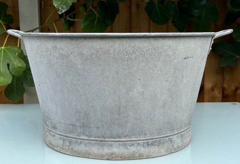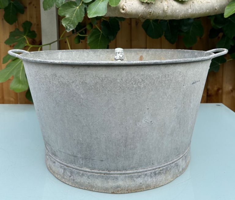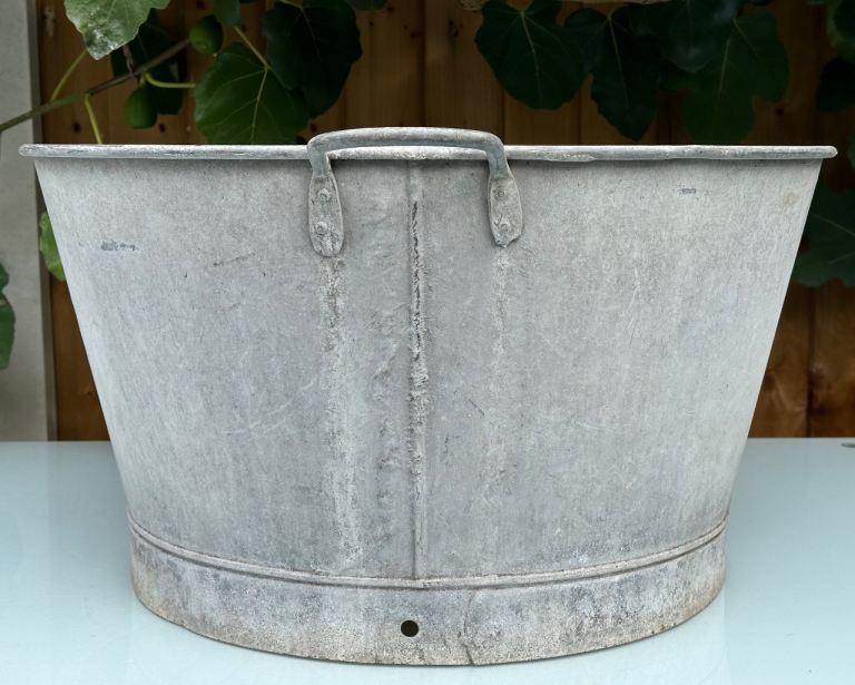 LARGE VINTAGE FRENCH GALVANISED PLANTER, WASH TUB, DOLLY TUB, BATH TUB, L71cm Diam 61cm H34cm 6kg - 1930s - REDUCED!