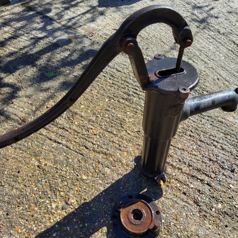 Pump handle moves, lovely feature by a pond, you can run a hose through