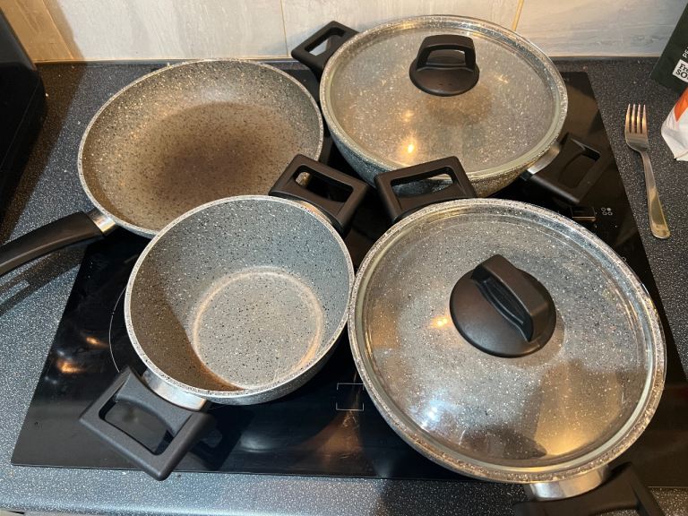 Posting for under a monthBioGranite cookware Set, Induction Base, 4-Piece cookware Set, Non-Stick Coating