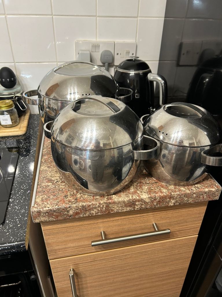 Originally purchased from Dunelm Mill in March 2024 for £65.00. In excellent condition with minimal scrapes or scratches. Only used occasionally as travelled a lot with work. Detachable handle can be affixed to different pots which are non-stick. Collection only - L3 area. Needs to be sold by 6th Feb as moving back to Northern Ireland and cannot bring with me.