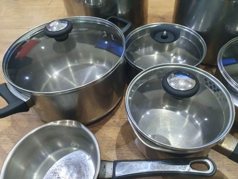 JOB LOT OF 7x Stainless Steel Pots & Pans Lids Prestige Small Large COLLECT NW9