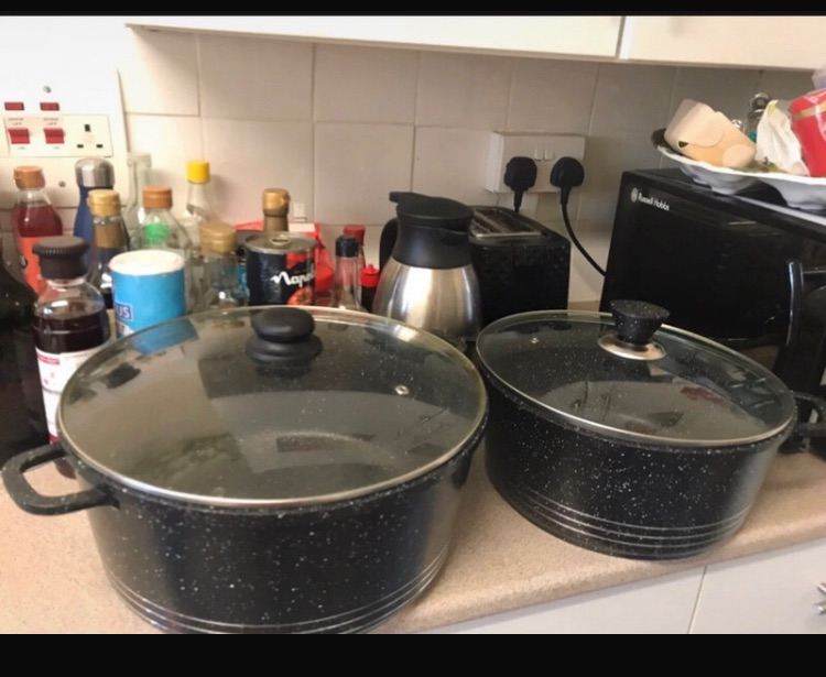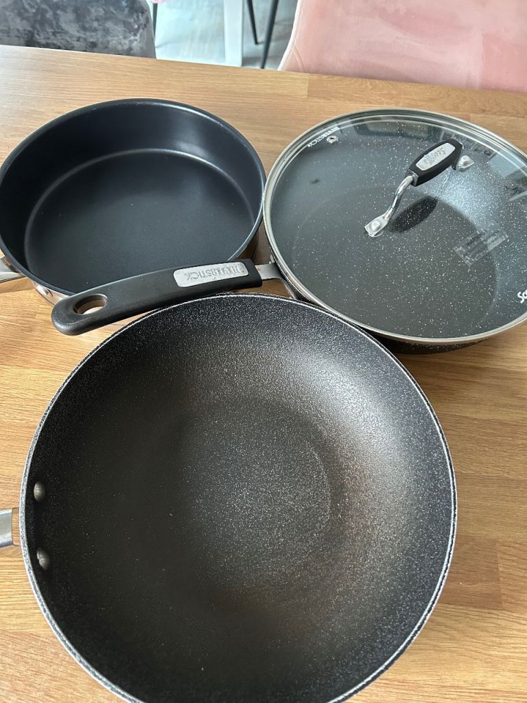 16cm, 18cm & 20cm saucepans with tempered glass lids, 16cm milk pan & 24cm frying pan