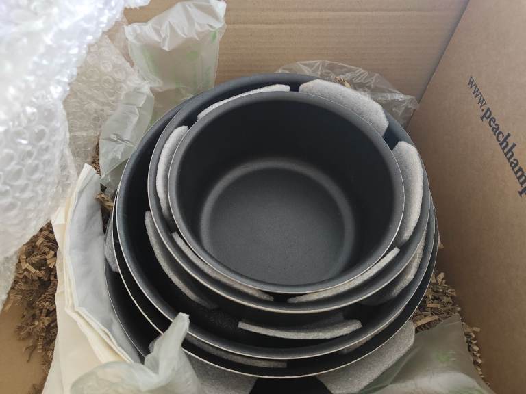 Set of six pots and pans from Tefal, they've lived a little so there's the occasional ding.