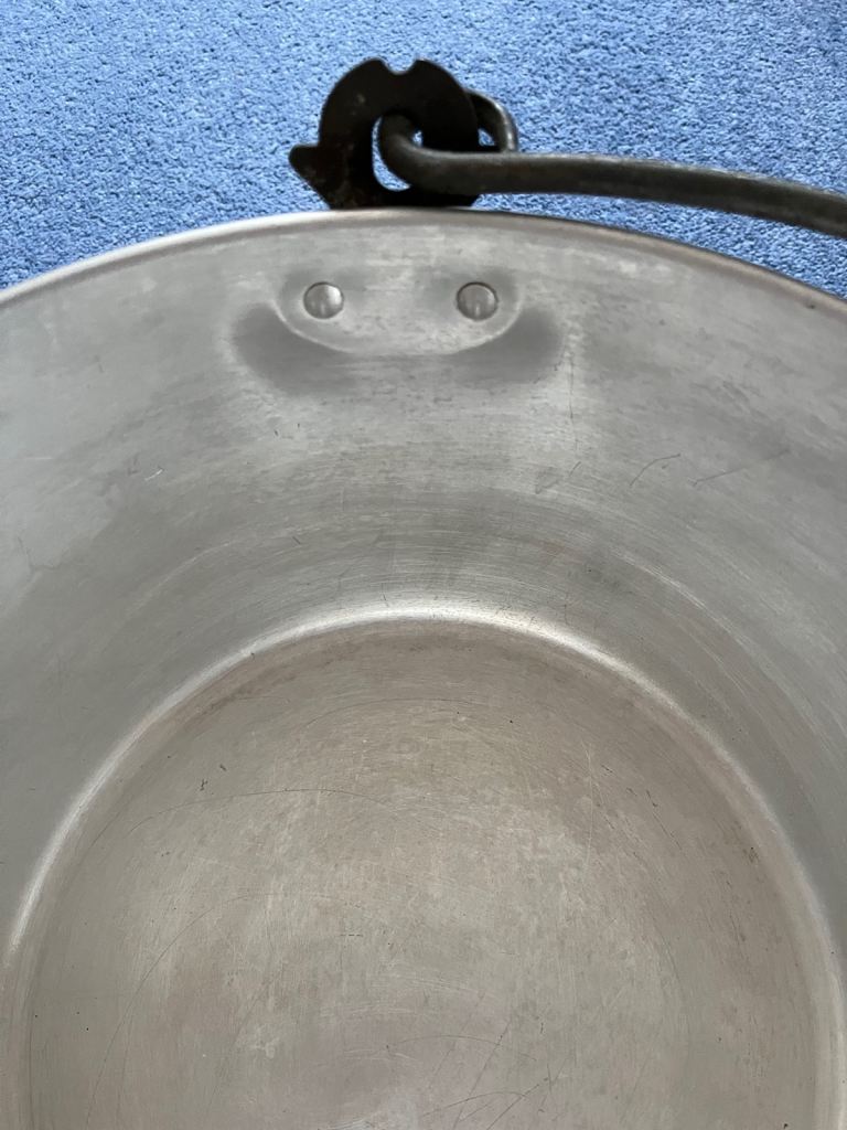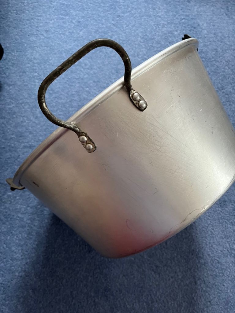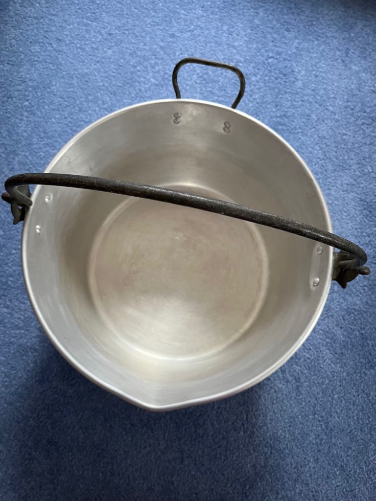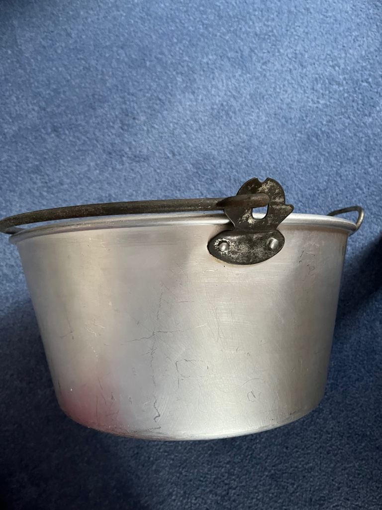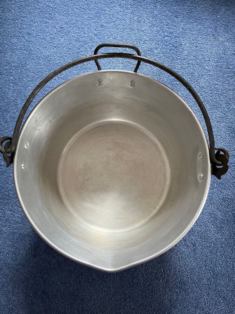Vintage chunky cast aluminium pan which is ideal for jam/marmalade making or large scale cooking.