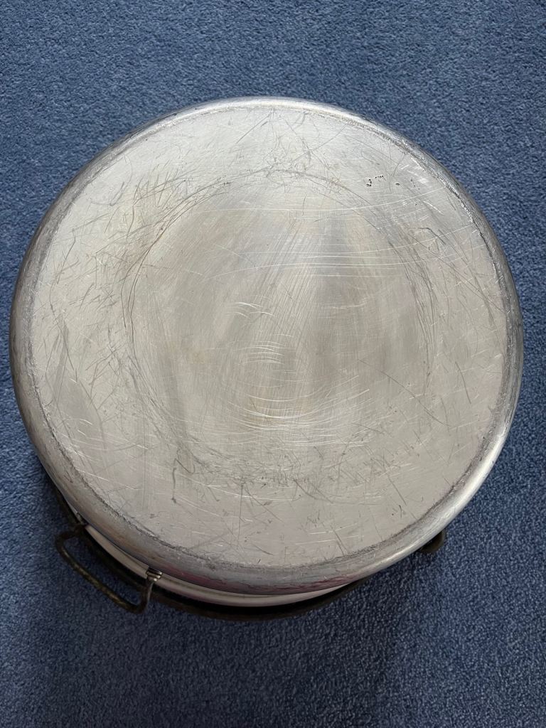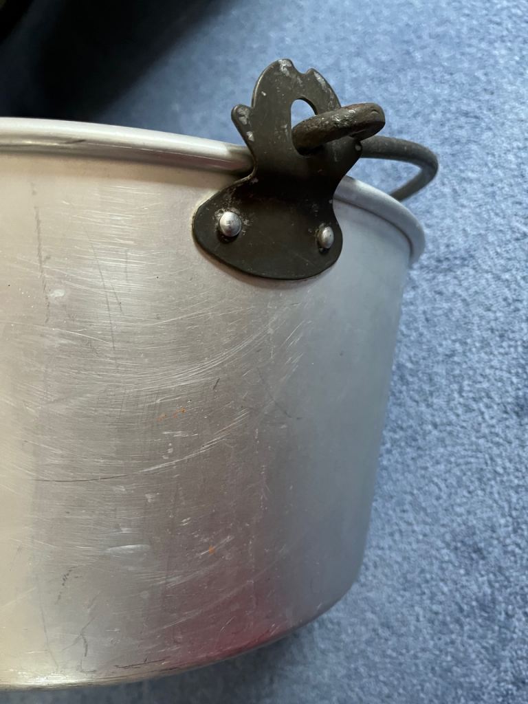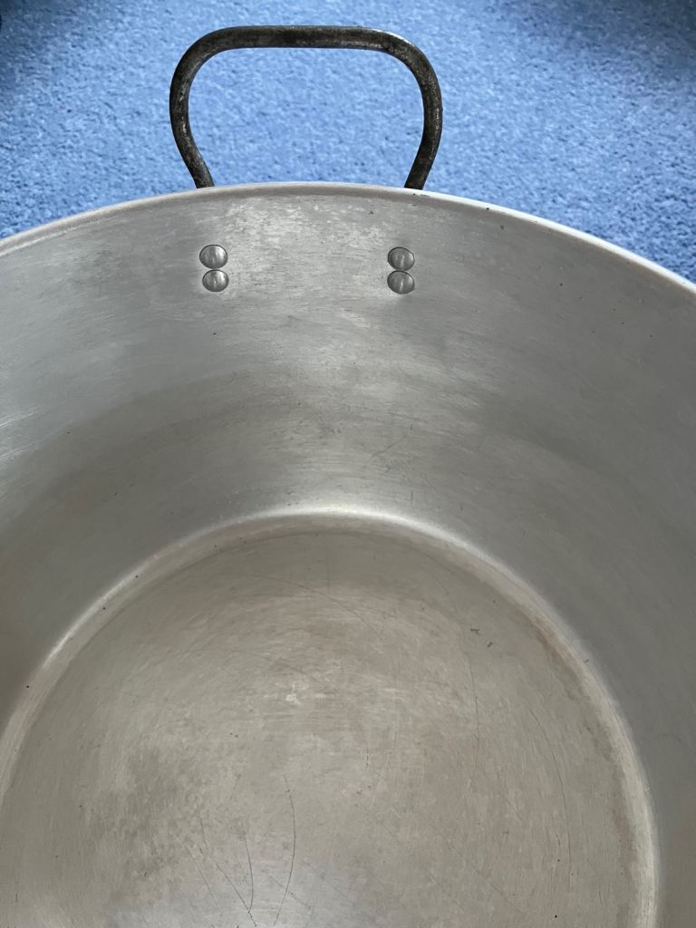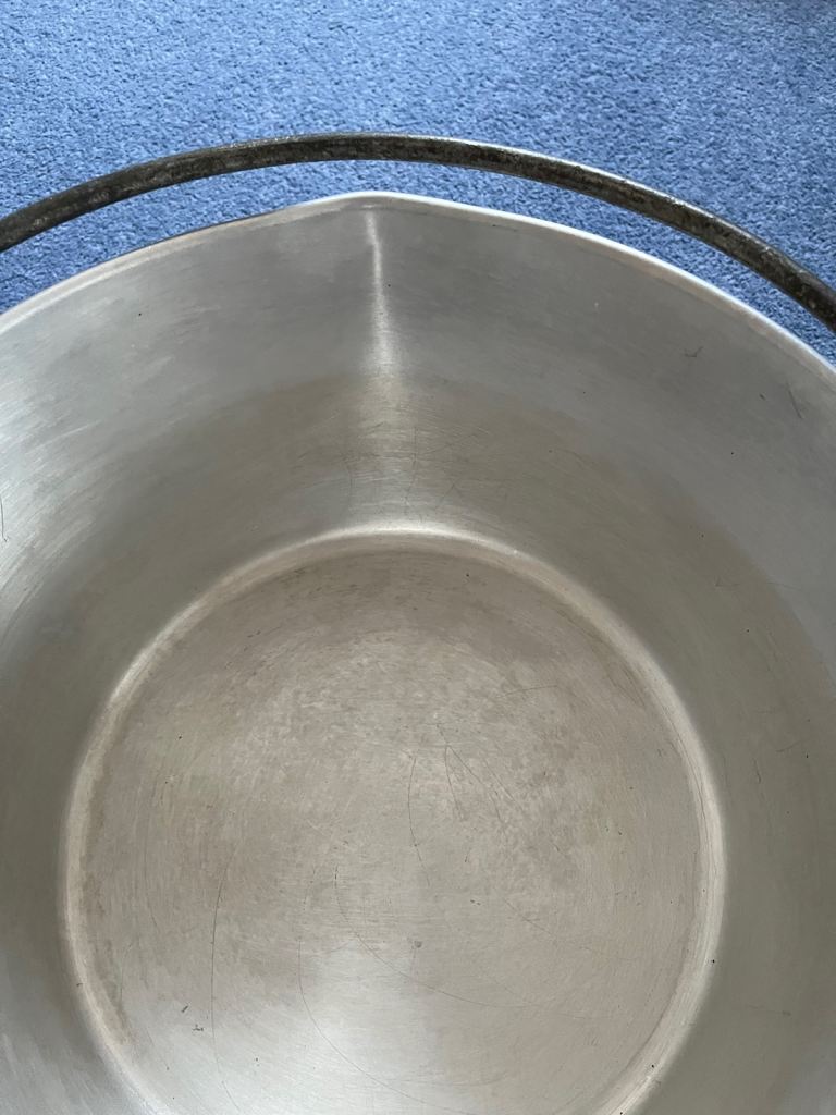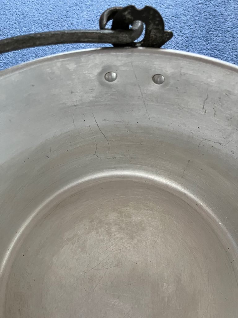 Vintage chunky cast aluminium pan which is ideal for jam/marmalade making or large scale cooking.