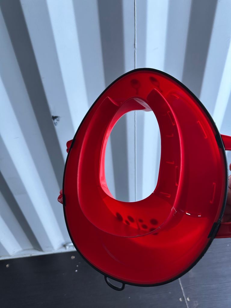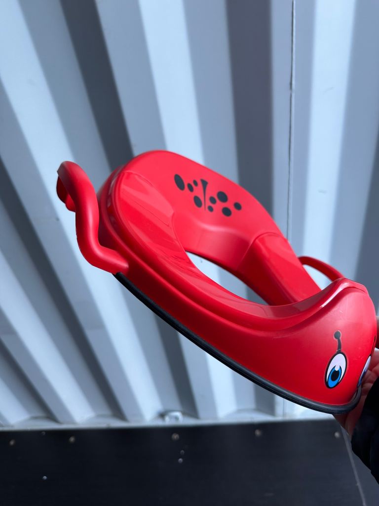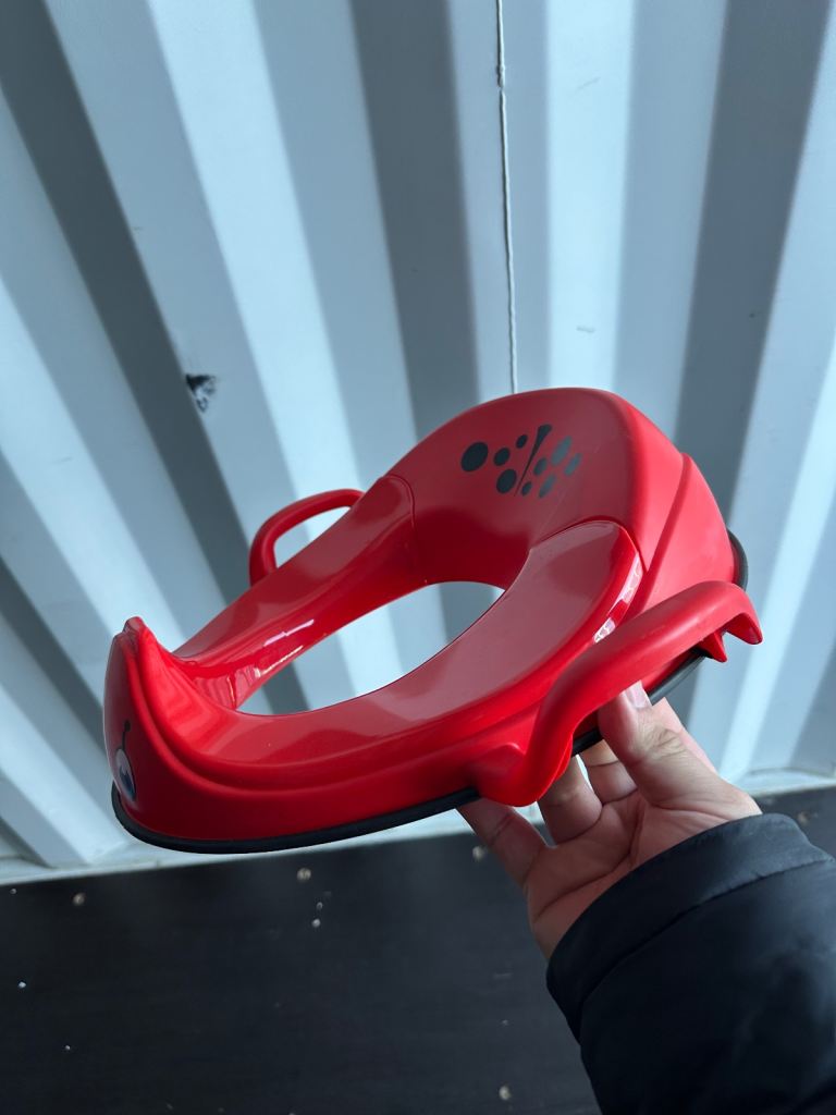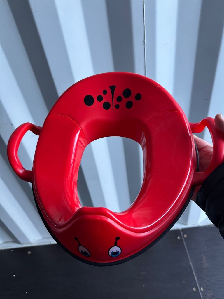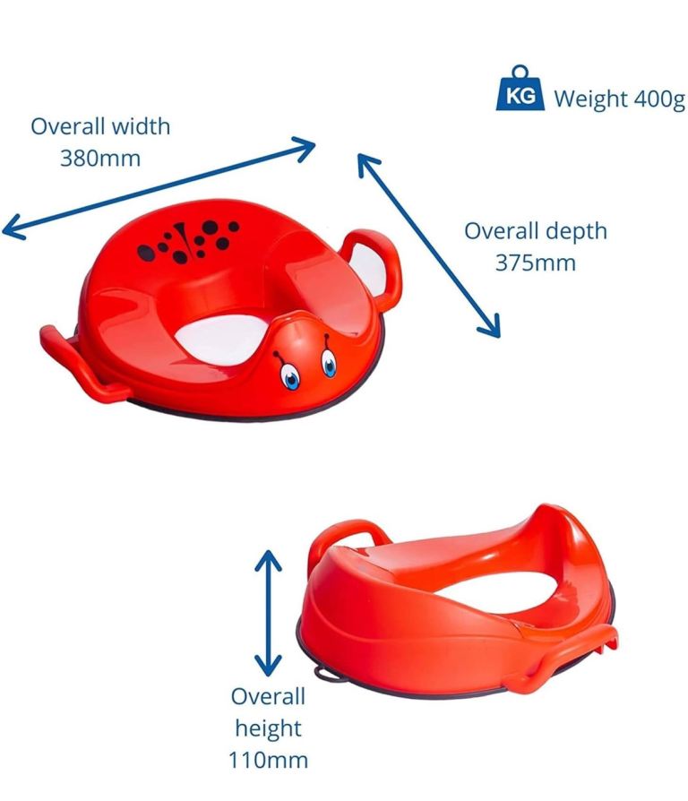 The My Little Trainer Seat Ladybird Toilet Training Potty Seat by my carry potty is a vibrant red potty seat designed specifically for toddlers. With its cute ladybird design, this potty seat is the perfect tool for helping young children navigate the process of toilet training. The seat is easy to clean and use, making it a convenient option for parents looking to encourage their toddlers to use the toilet independently. This potty seat is a practical and fun addition to any toddler's bathroom routine. Item opened to review and take photos