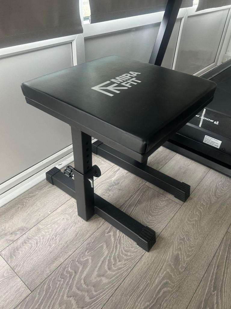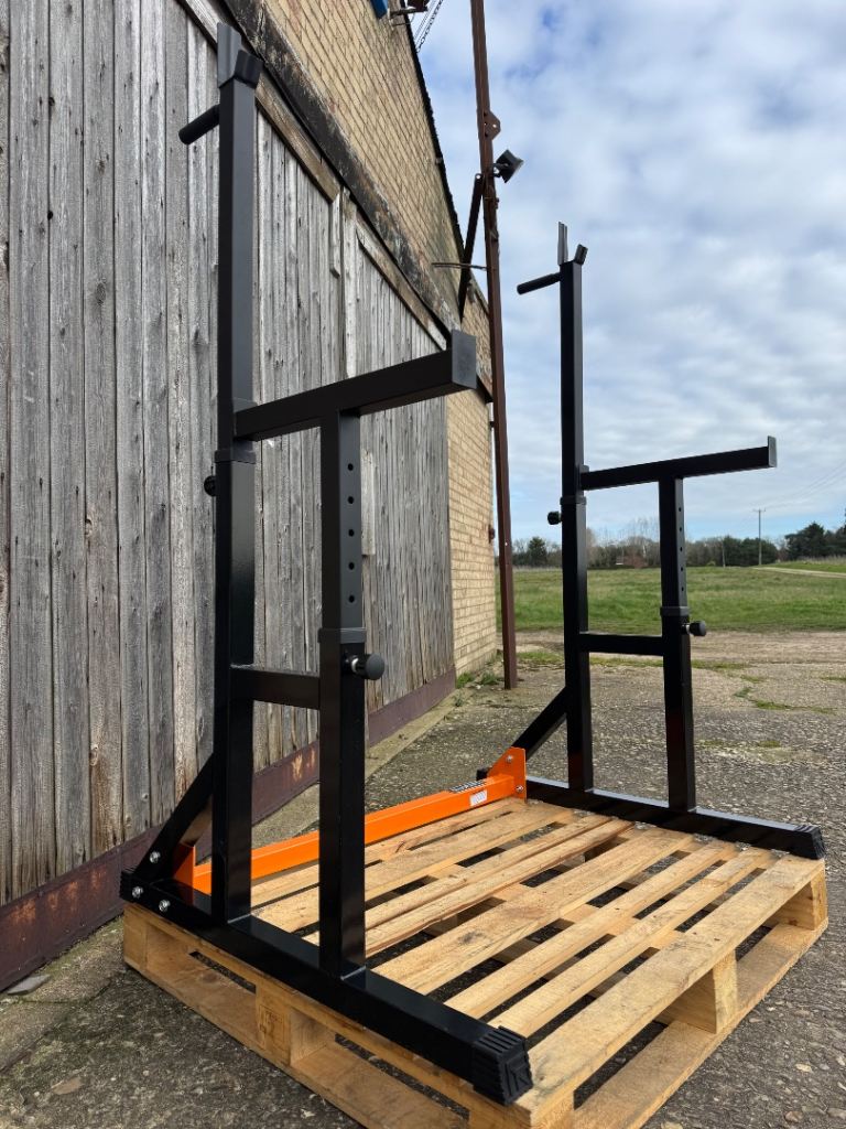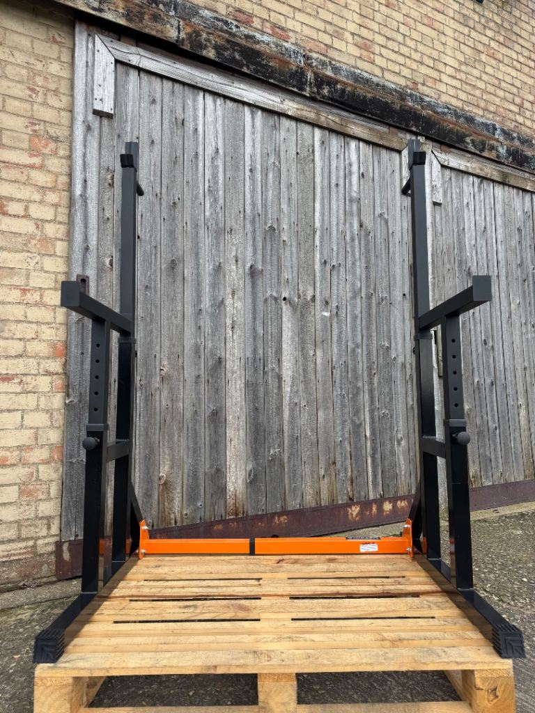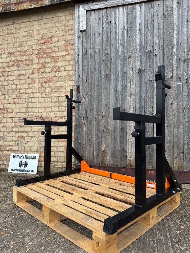 Fully functional M130 squat and bench press rack from Mirafit. Fully adjustable squat rack and spotter catchers. Width adjustable. £149.95 new.