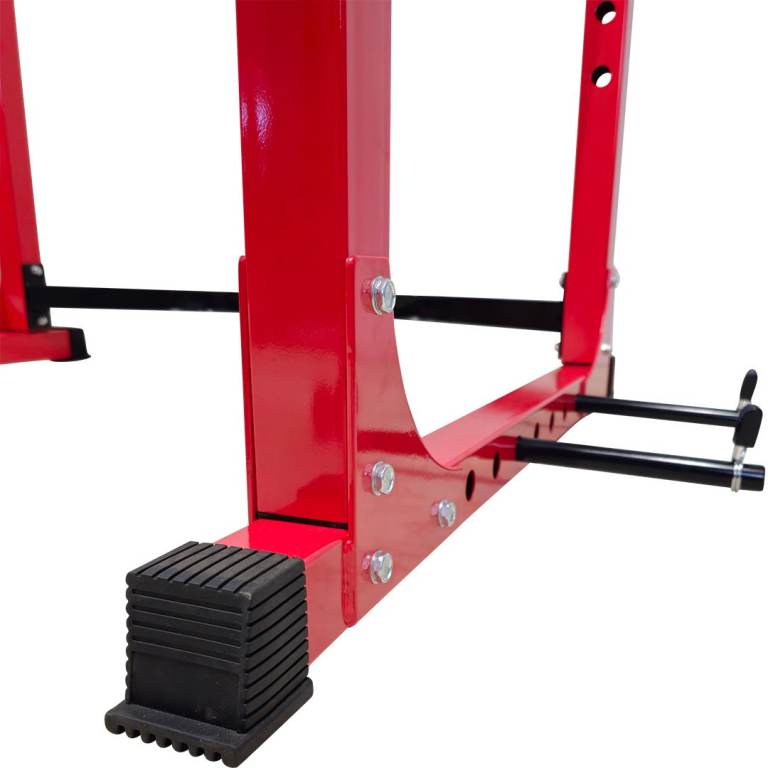 • Heavy duty J hooks with PVC to protect barbells from scratching.