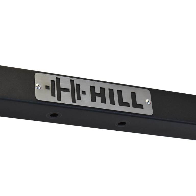 • Premium stainless steel laser-cut Hill Fitness logo badge.