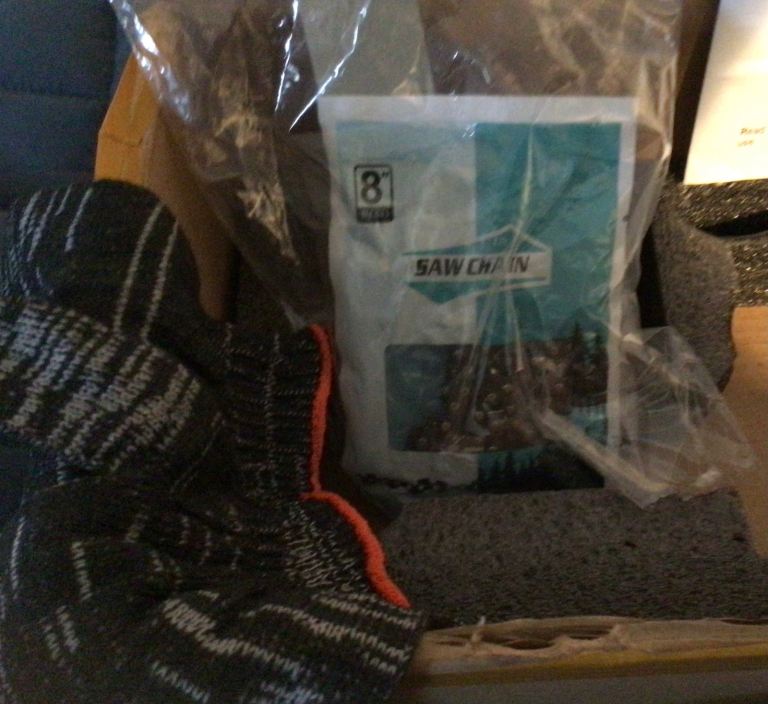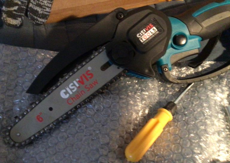 This is a new in the box never used battery chainsaw, it comes with 2 batteries and 1 charger unit, 2 chains, 2 bars 1 x 6 inches and 1 x 8 inches, plus other related items in picture.