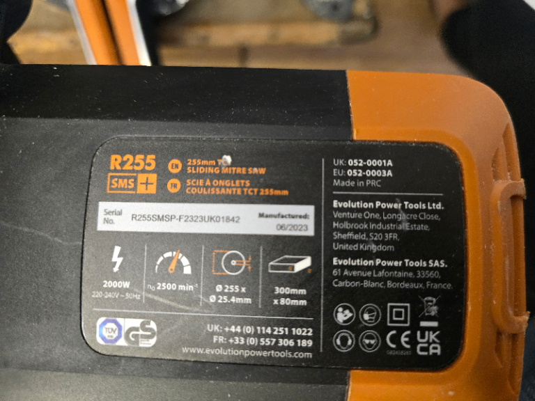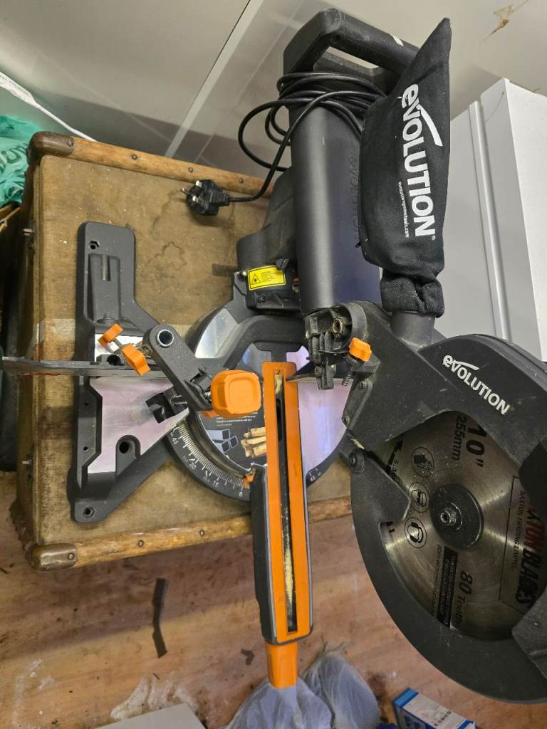 Evolution R255 SMS+, 255mm sliding mitre saw, 230v
