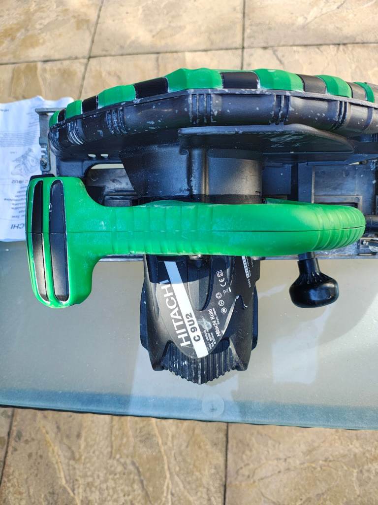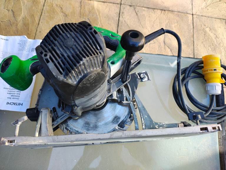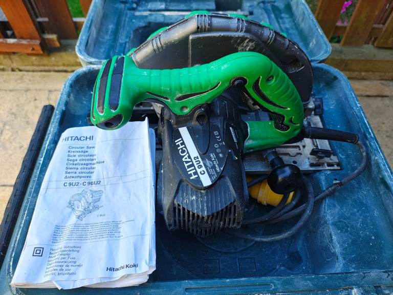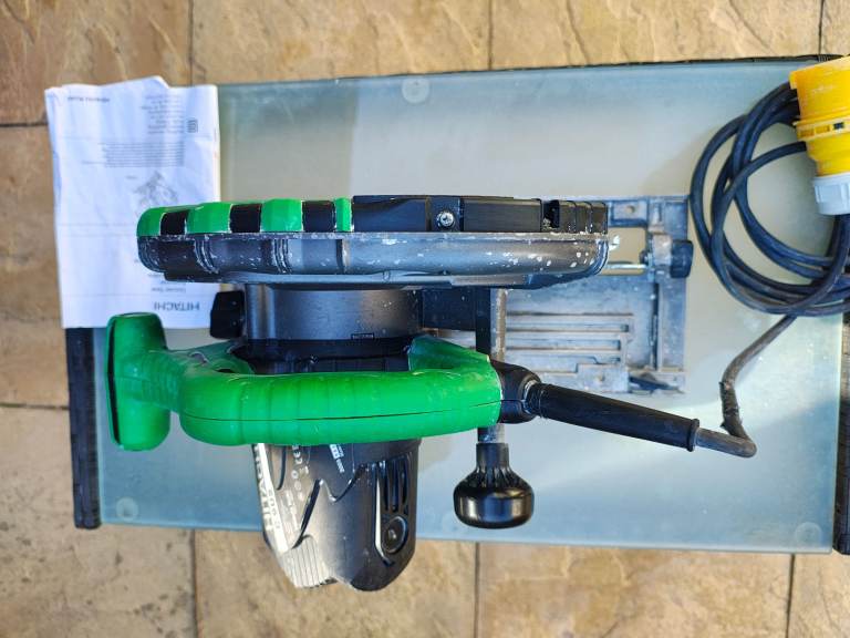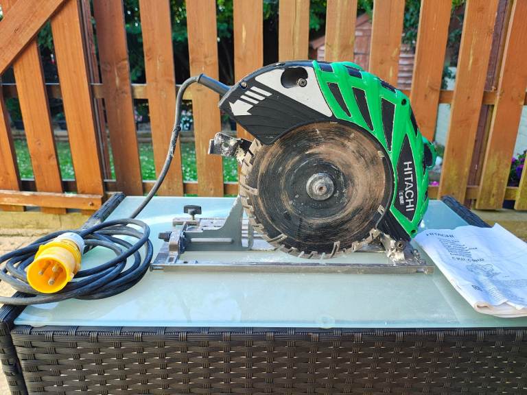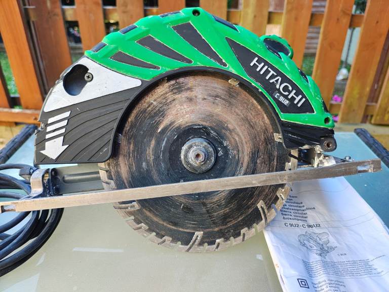 Hitachi C9U2 110v large circular depth saw in very good used condition, it cuts to about the same depth as a 9in grinder, power cable has been repaired near body of machine and guide rail bolt has been repaired Comes with hard plastic box Manual, Allen key and side guide rail, supplied with a 9 in diamond stone cutting blade in good condition,Can be seen working, please study pictures for condition,Collection from Chippenham Wiltshire