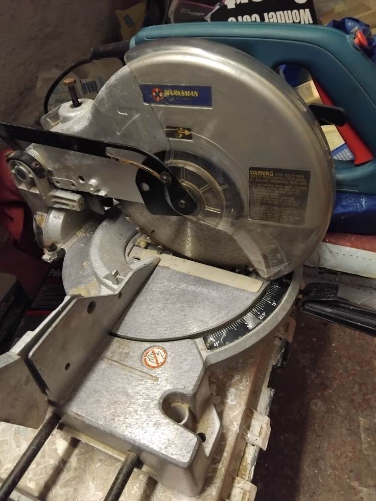 MARKSMAN 10 INCH MITRE SAW 240V USED BUT STILL DOES THE JOB WITH TCT BLADE GOOD FOR GENERAL CUTTING