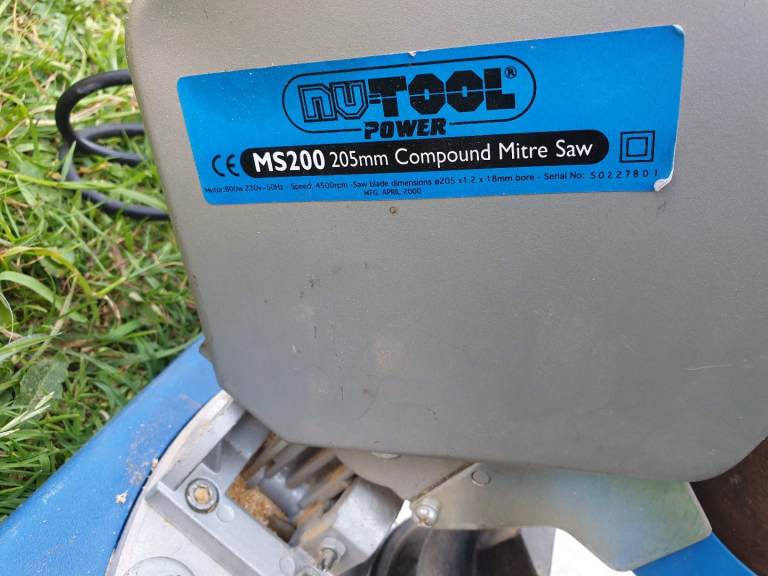 NUTOOL COMPACT 800W 205MM BLADE COMPOUND MITRE SAW IN GOOD WORKING ORDER + CAN BE SEEN WORKING. COLLECTION IS CHESTERFIELD OR LOCAL DELIVERY FOR FUEL COST. I HAVE OTHER 110V AND 240V TOOLS ADVERTISED