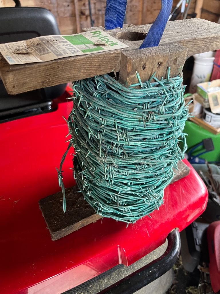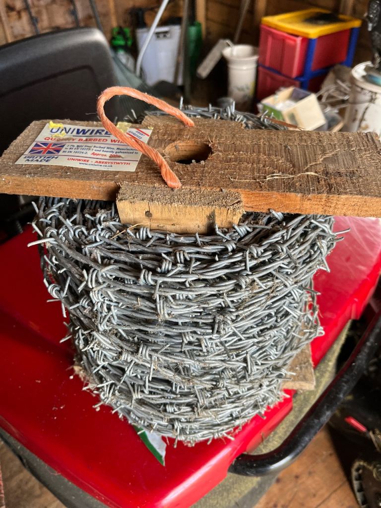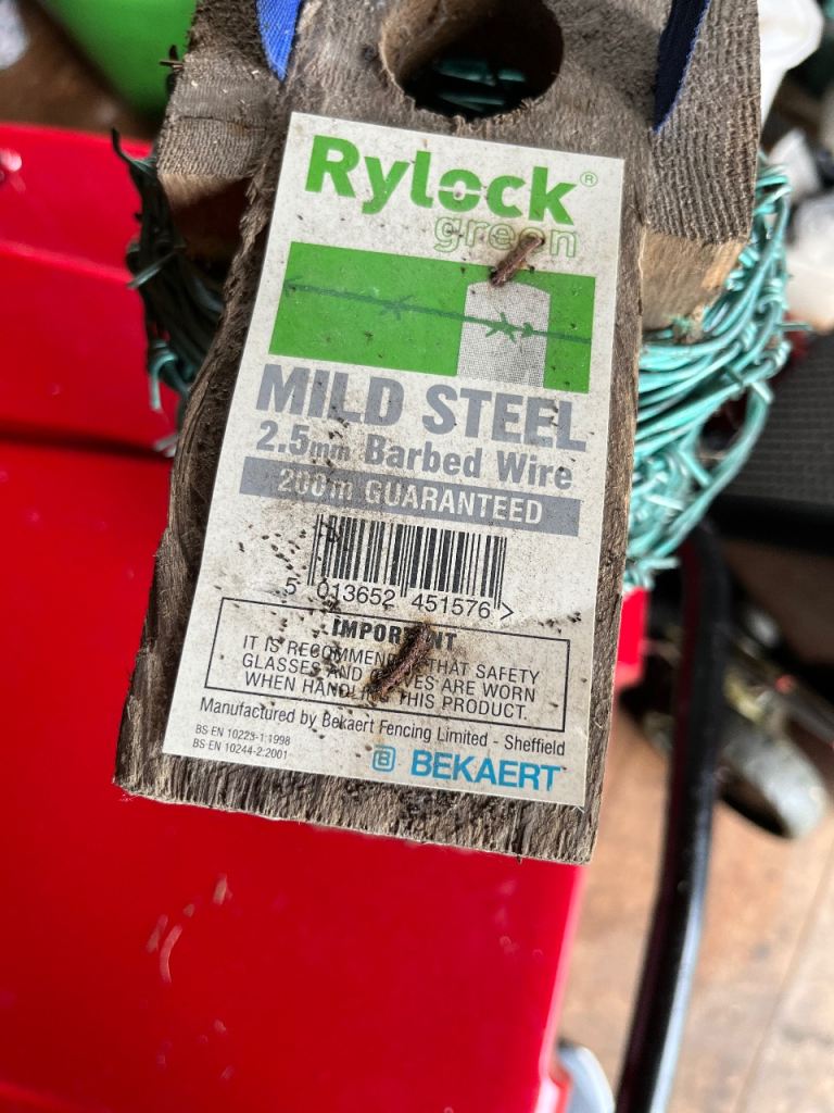 Please see photos 2 Rolls barbed wire. One roll unused (silver) purchased but not used other (green) partly used but plenty left
