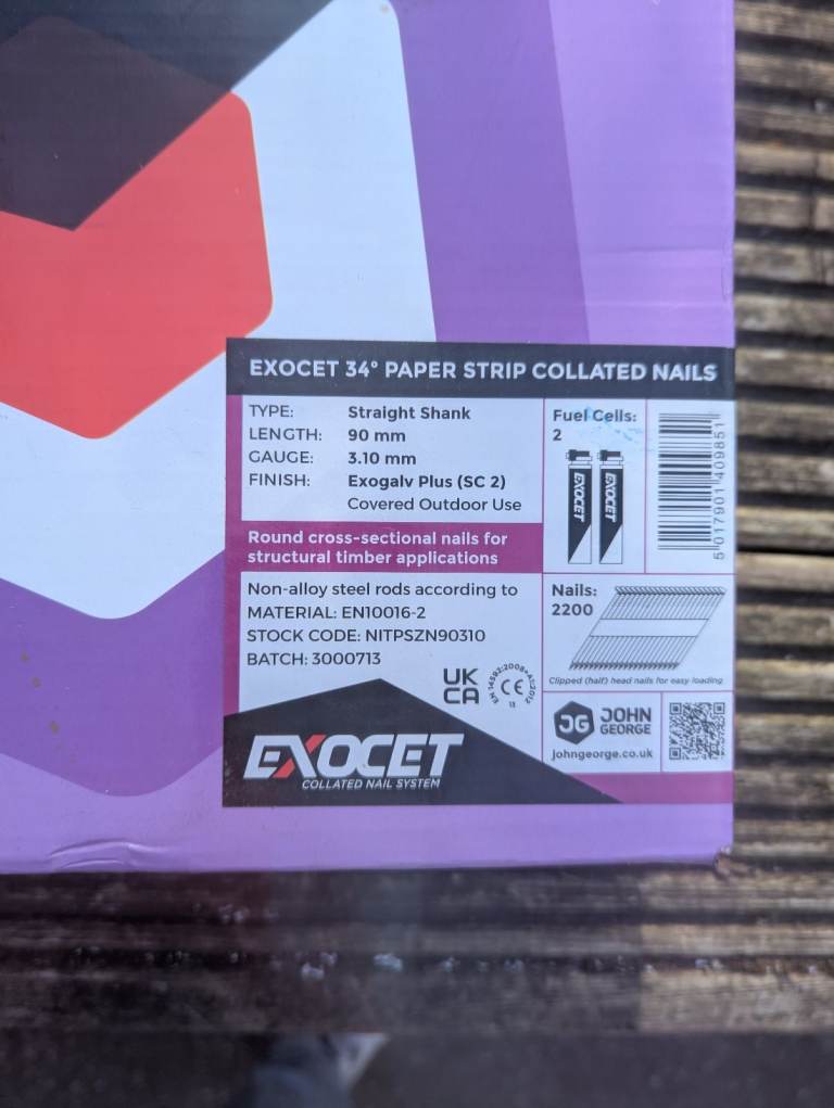 Exocet 90mm Straight Shank Nails. 1760 nails left in shanks of 40 + 2x bottles of gas. Portobello area.
