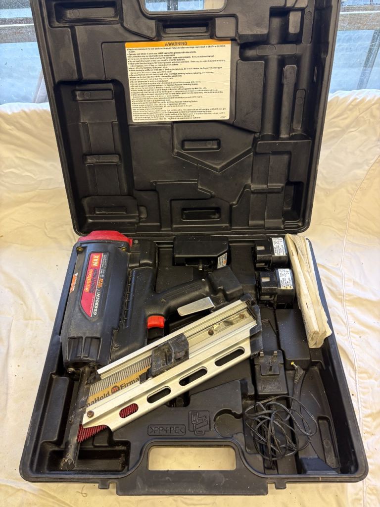 Excellent and good working order Max 1st fix nail gun with box 2x battery and charger…