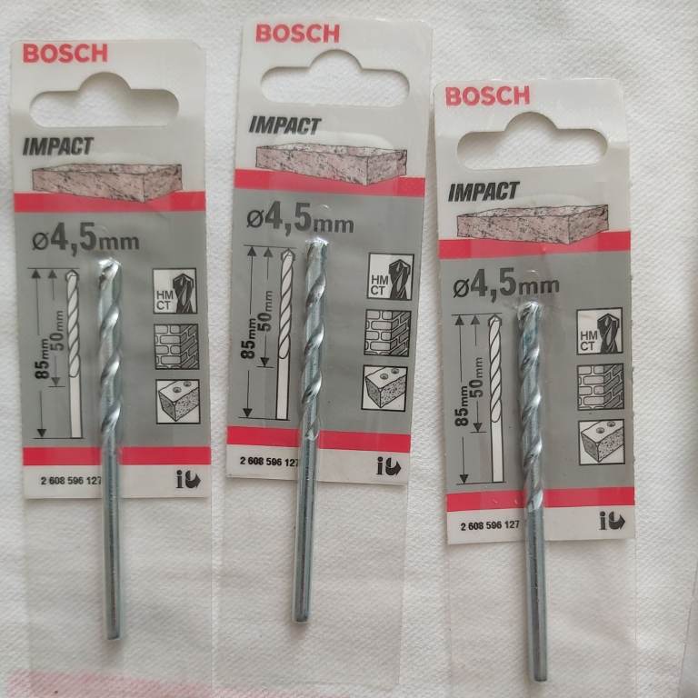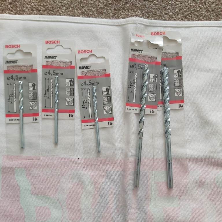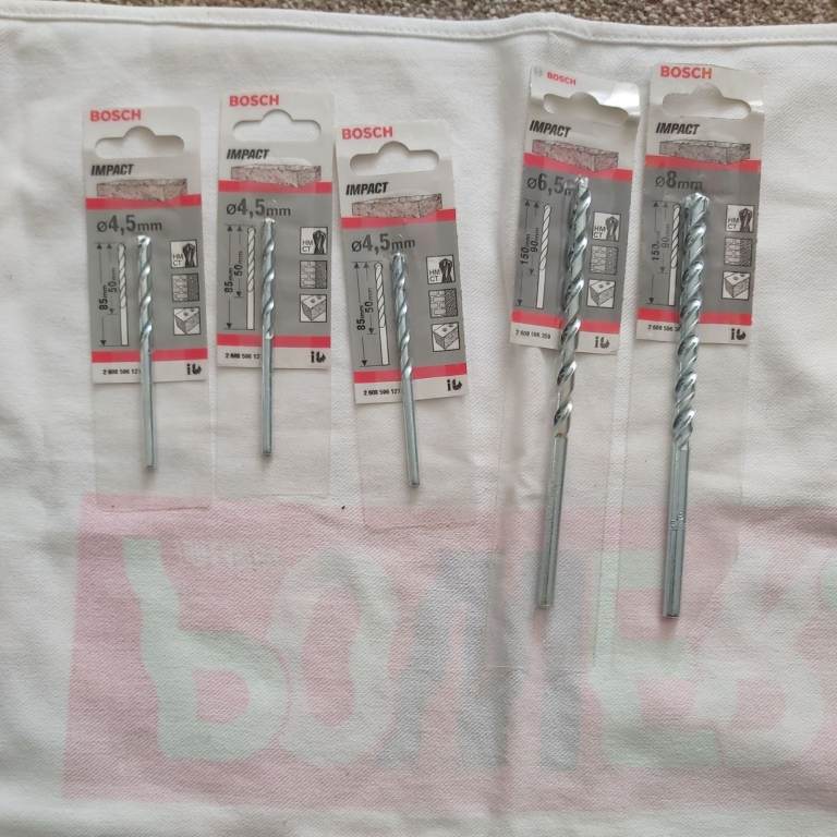 5 Bosh drill bits bundle consists of 1at 8mm 1at 6.5mm and 3 at 4.5mm all brand new quality trade items ideal for jioners builders DIY etc price is for all