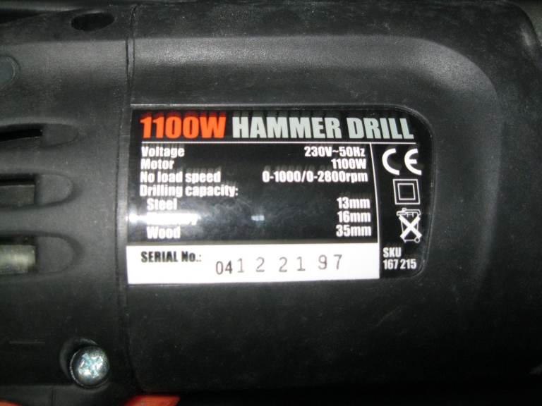 1100 WATTS HAMMER DRILL, GUNNISLAKE PL18 9NA