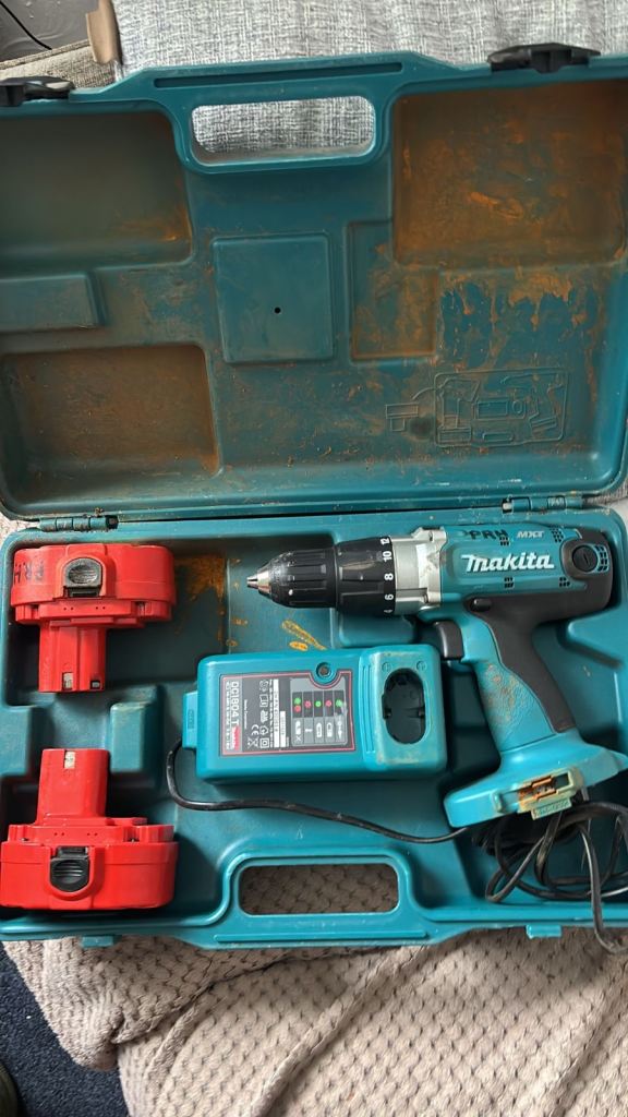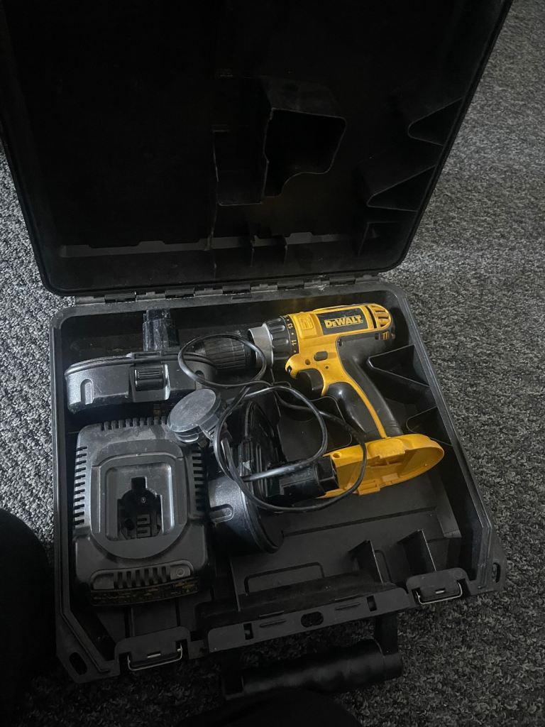 dewalt dc725 cordless drill used with box and charger and replacement battery as the original batteries dont hold charge no calls just text only