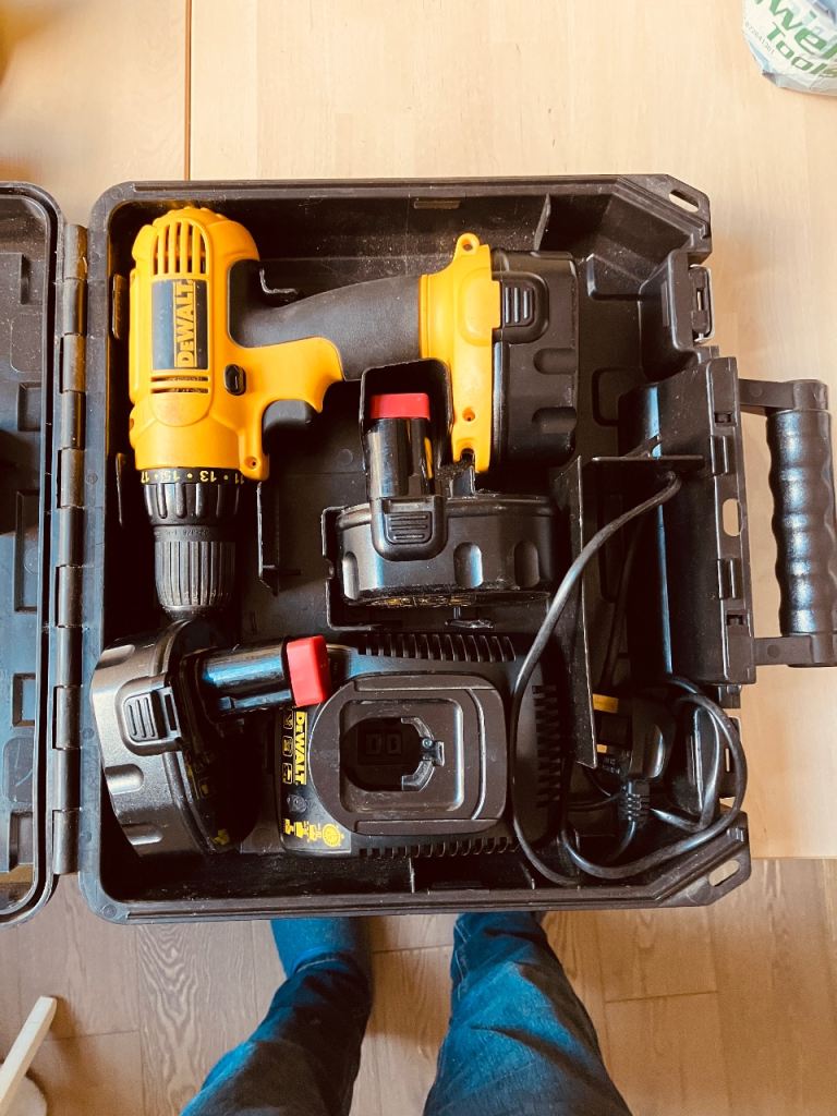 Used DeWalt DC728 no longer needed. Signs of wear and tear and a sticky (but working) direction lever. 1400rpm max speed taking 1-10mm bits. Perfect for the odd DIY job. Comes with case, charger and three batteries.