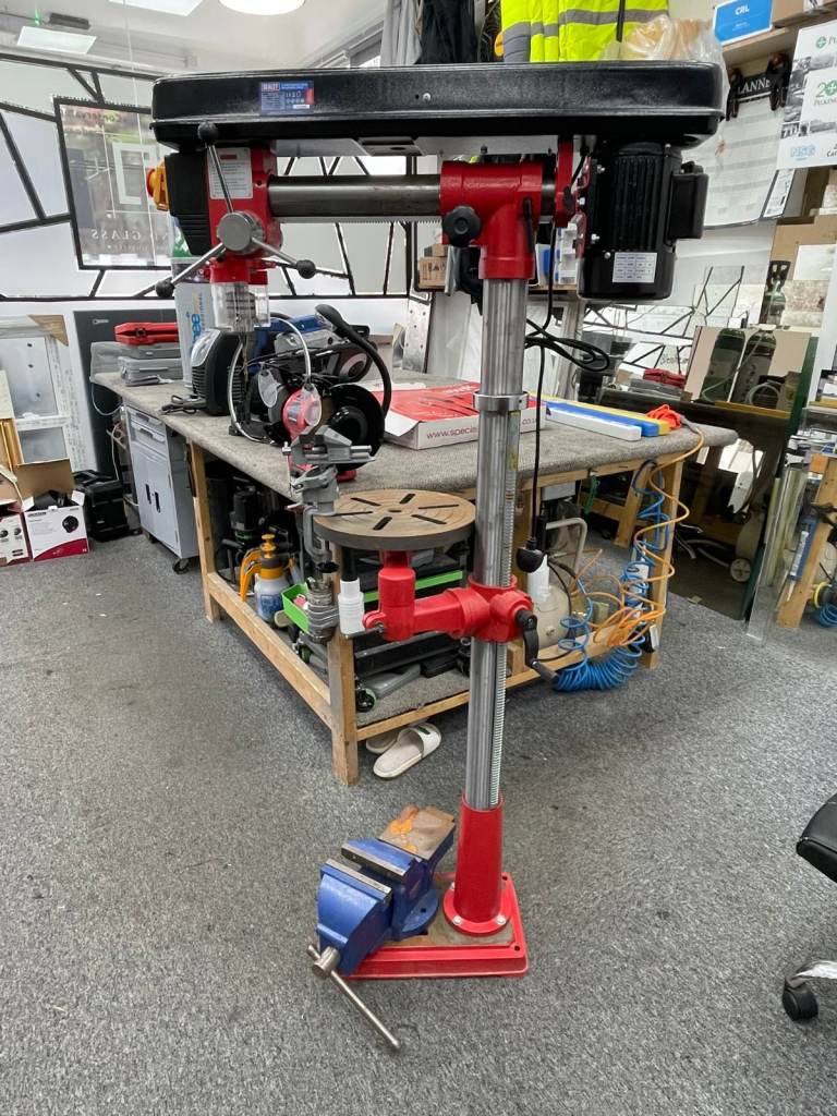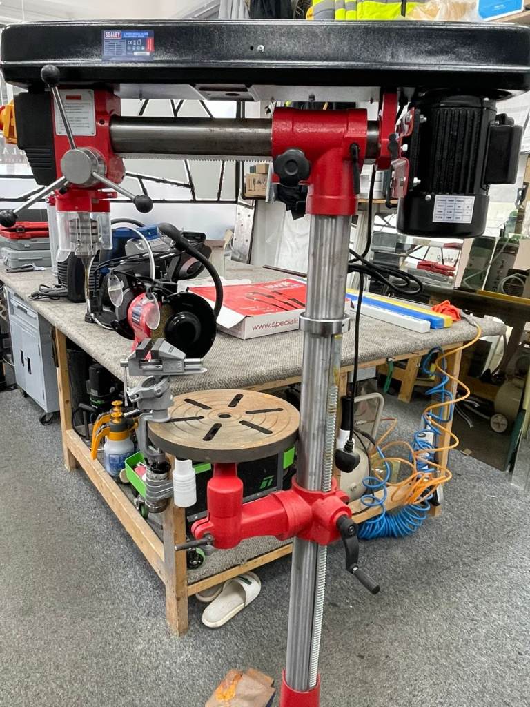Heavy duty Sealey floor standing pillar drill (drill press) in good working condition. Ideal for workshops, metalworking, woodworking, and DIY projects. Solid and reliable machine designed for accurate drilling.