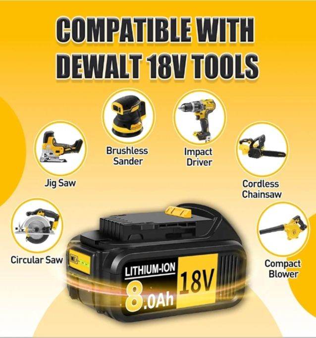 Power up your tools with this high-capacity 18V 8000mAh replacement battery, designed to deliver long-lasting performance and reliability. Compatible with Dewalt DCB184, DCB180, DCB181, DCB182, DCB200, DCB201, and DCB204 models, it ensures seamless integration with your existing cordless tools.
