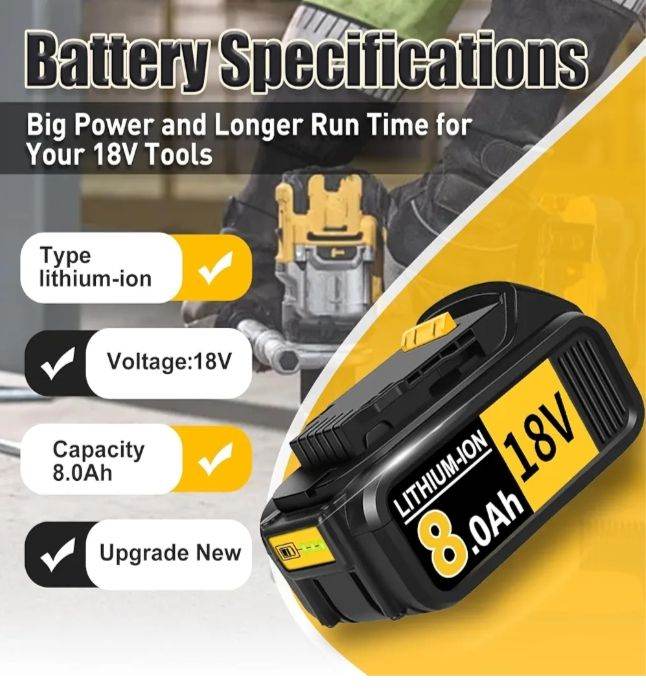 High-Capacity 18V 8000mAh Replacement Battery with LED for Dewalt DCB Series, Reliable & Durable