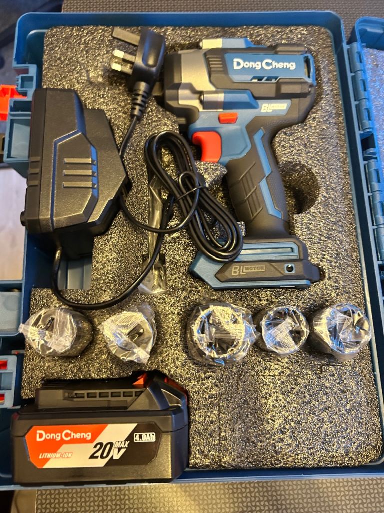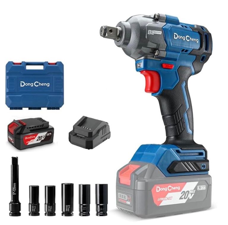 Dong Cheng 20V Brushless Impact Wrench, 698N.m High Torque, 1/2 inch 4-Speed Cordless Impact Gun with Storage Box, Easily Removes Bolts on Cars, Trucks, and Tractors, Includes 4.0Ah Battery & Charger