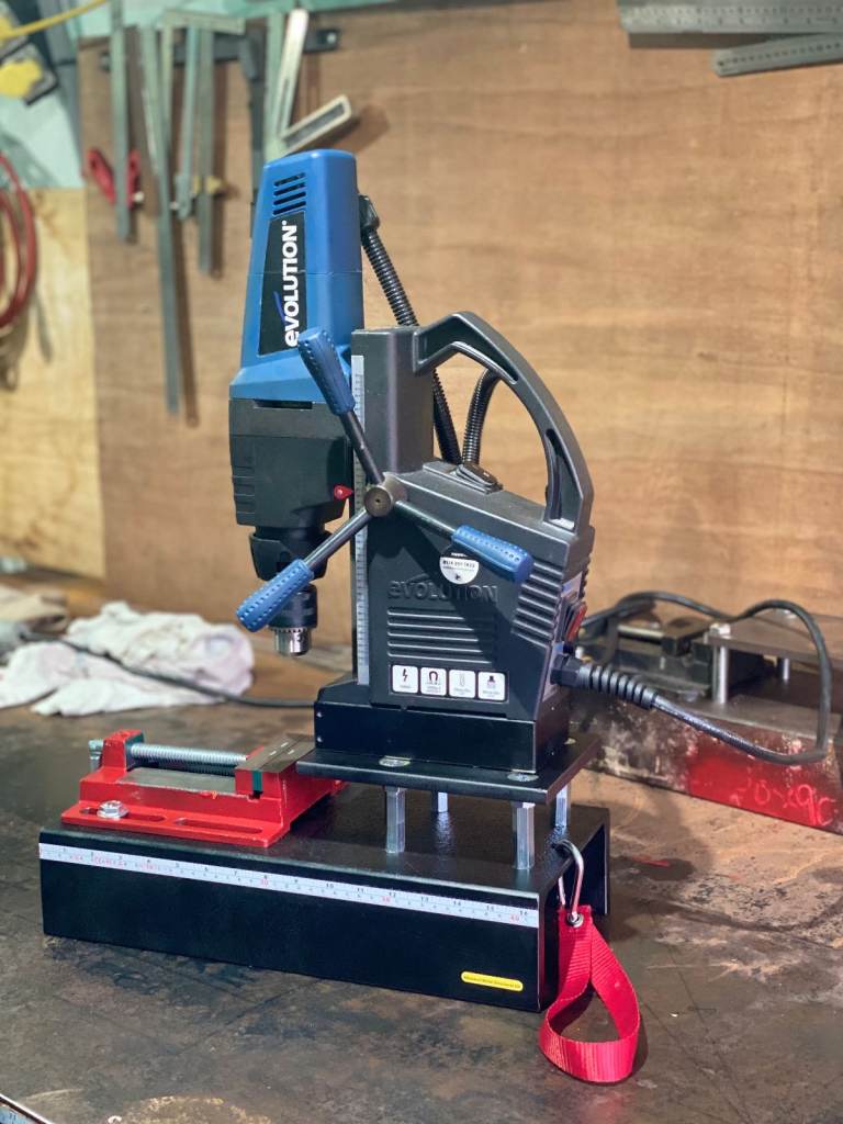 Heavy universal mobile base for magnetic drill machine.