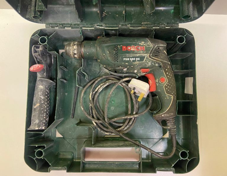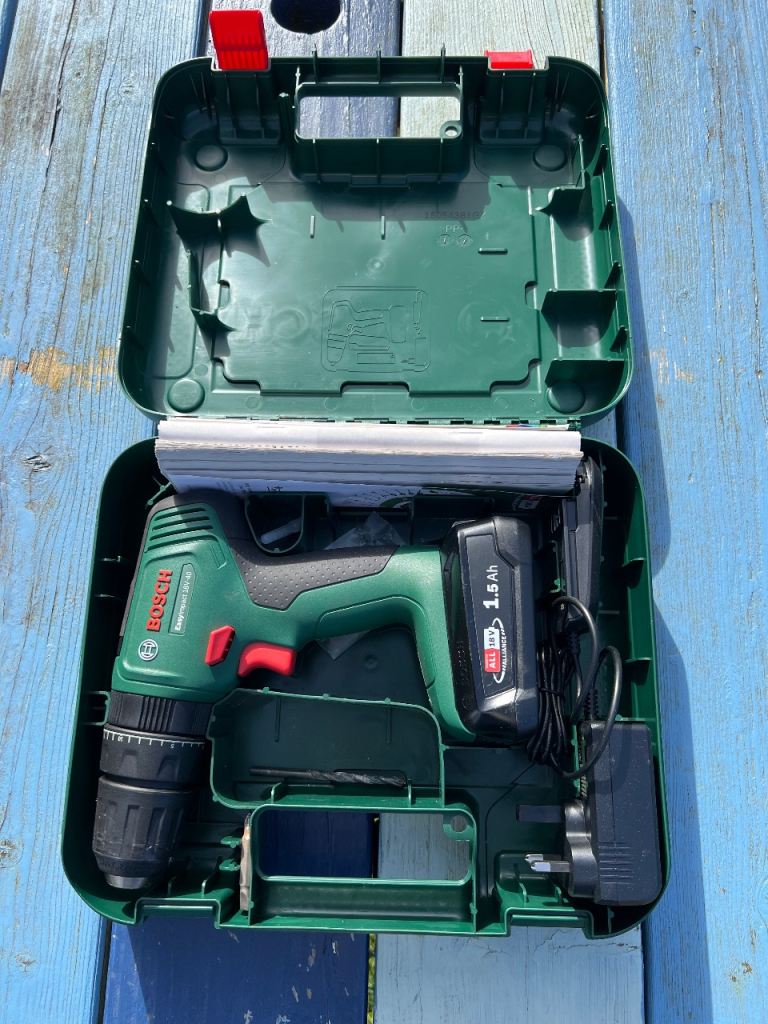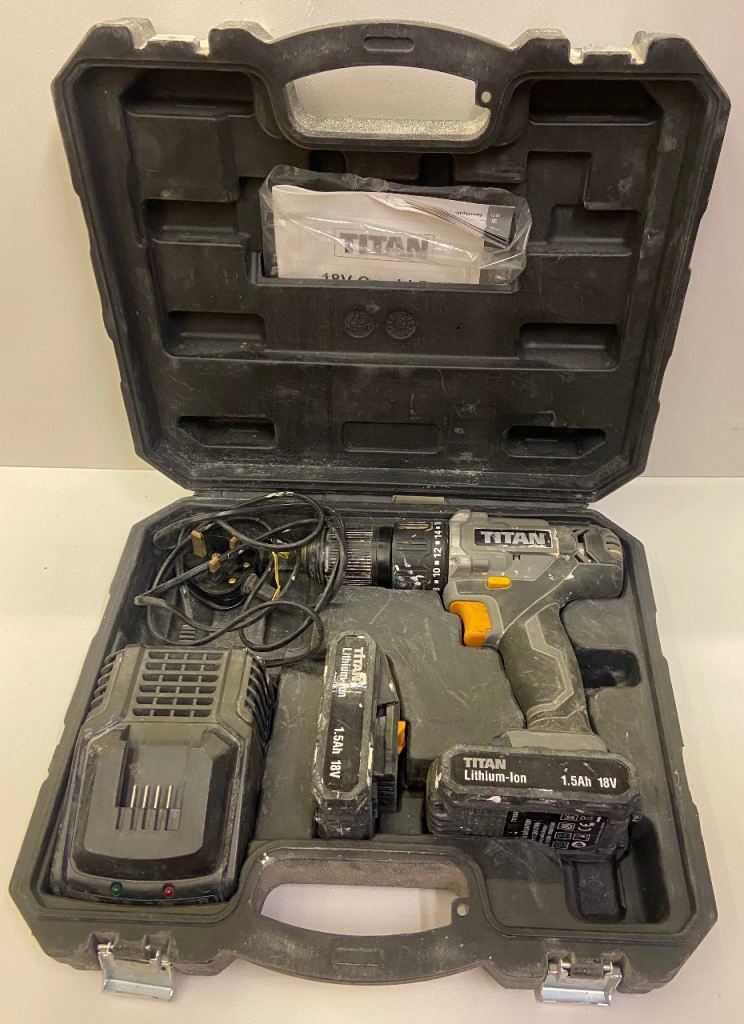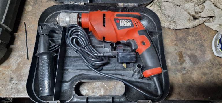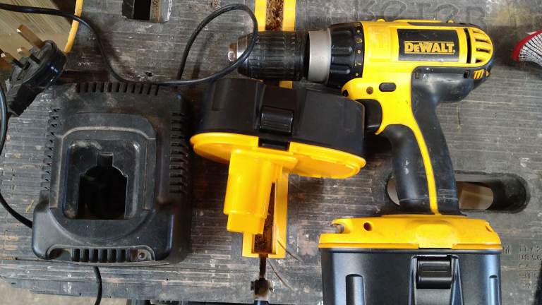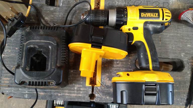 Quite old cordless DeWalt drill driver in case with charger and two new this year unbranded batteries. Smells a bit electrical when in use but has not hindered it's operation. Keyless chuck and hanmer action. Selling as treated myself to a new one.