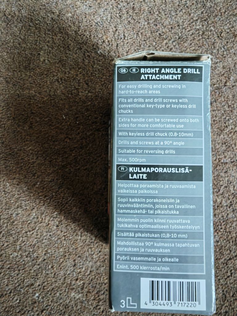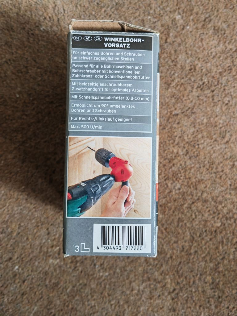 Powerfix right angle drill attachment,for easy drilling and screwing in hard to reach places,been stored,new in box.