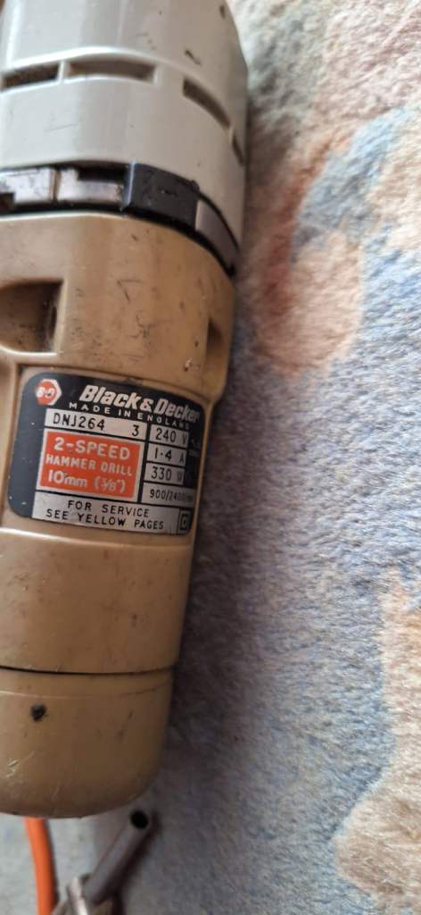 A good quality & good working order vintage Black & Decker DNJ264 2 speed hammer drill with chuck key attached. Rich