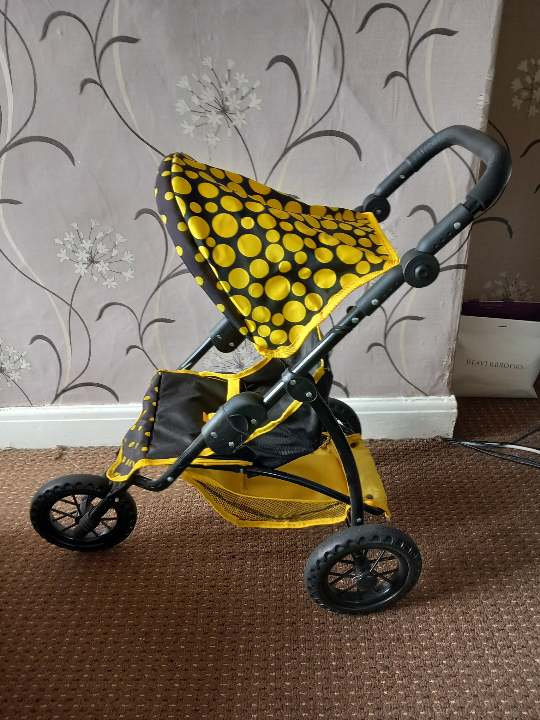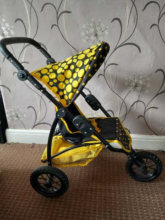 Modern Unisex Dolls 3 Wheel Jogger Pushchair – Vibrant Yellow & Black
