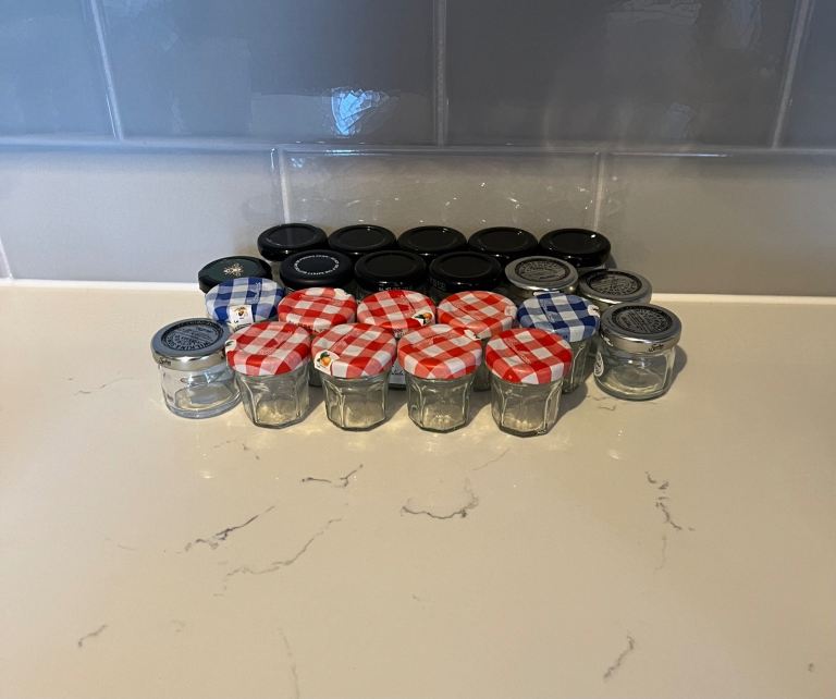 Posting for 2+ yearsFREE - 22 mini glass preserve jars