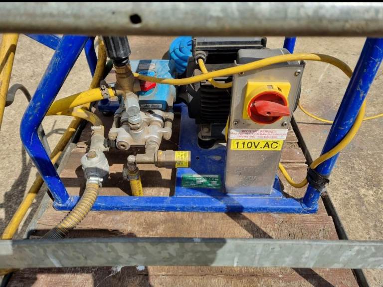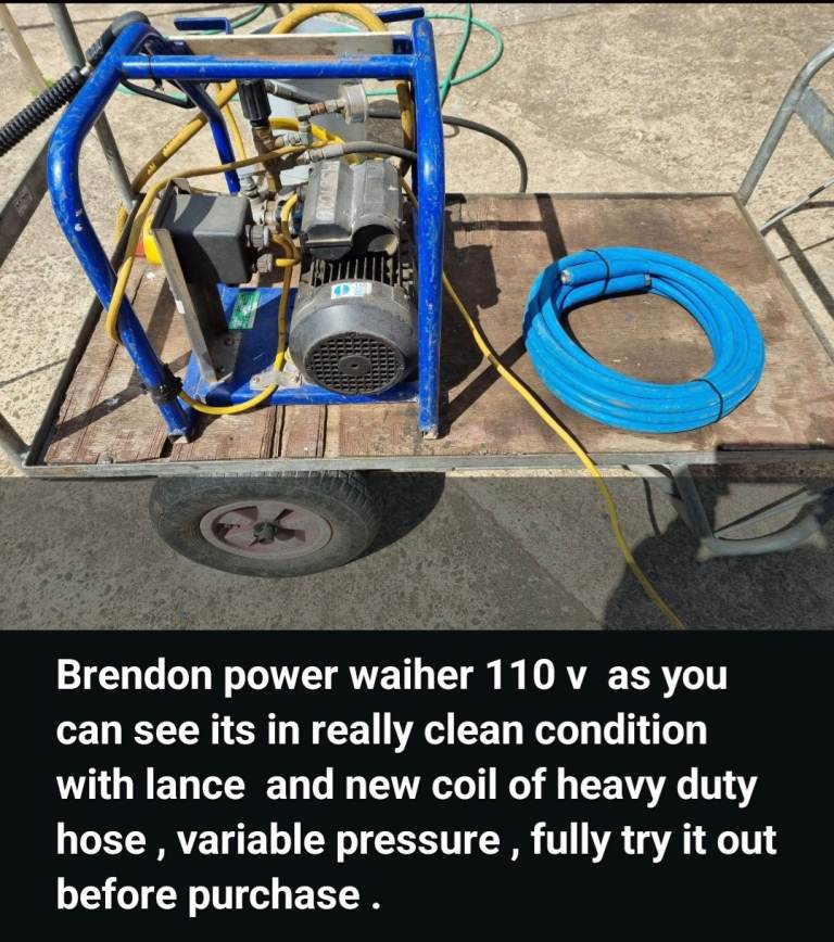 Brendon power washer 110v as you can see its in really clean condition with lance and brand new coil of heavy duty hose , variable pressure.