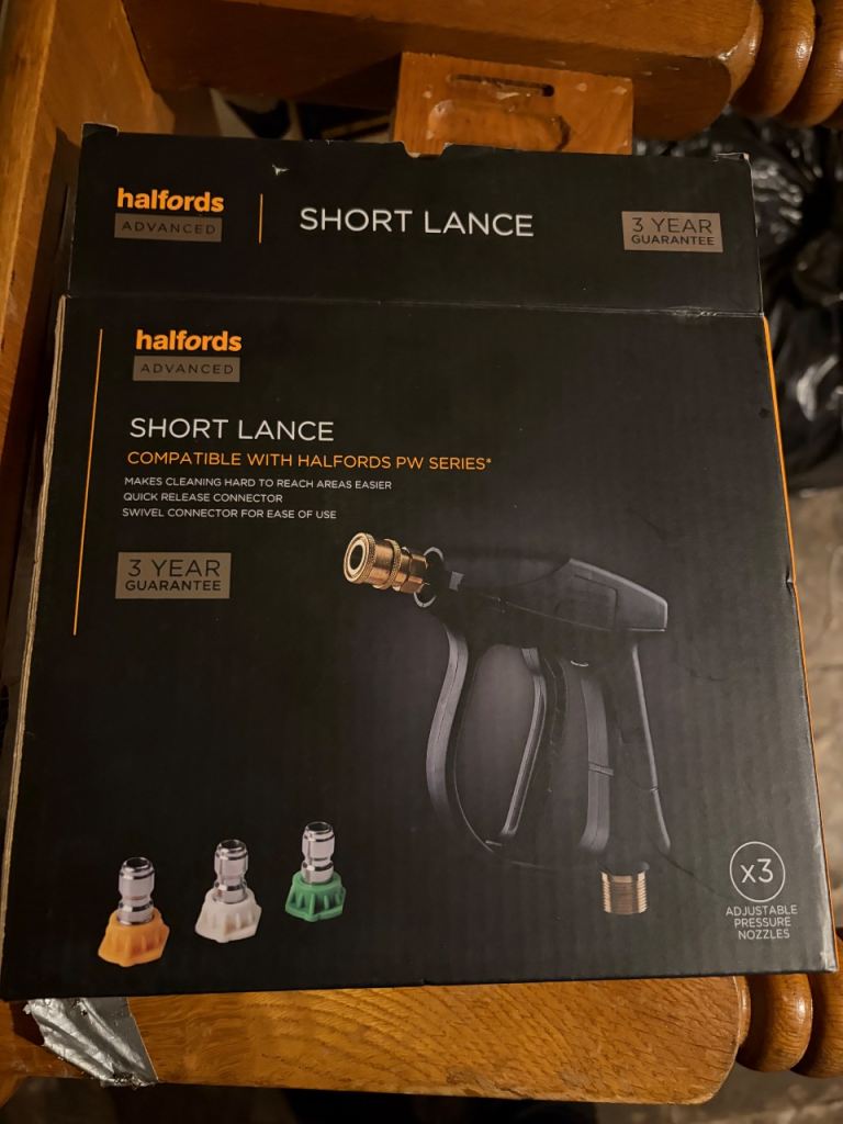 Here I have a Halfords short lance for sale good condition comes with box no nozzles hence price £5 no offers