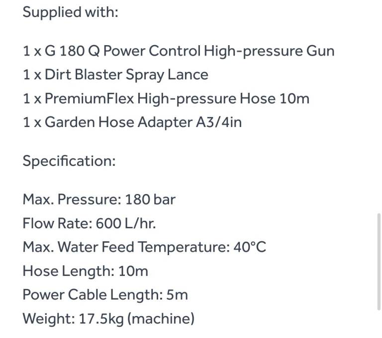 was purchased new very recently but unfortunately we made a mistake as does not fit the attachments we needed to use, hence resaon is now for sale for a bargain price compared to the recommended retail price of £469 on the karcher website & cheapest currently offered online is £369 without the extra FJ10c foam lance that is also brand new & unused too.