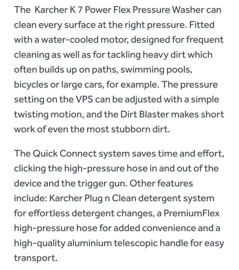 karcher k7 power flex pressure washer 180 bar top model, comes as brand new in box with all accessories & documents.