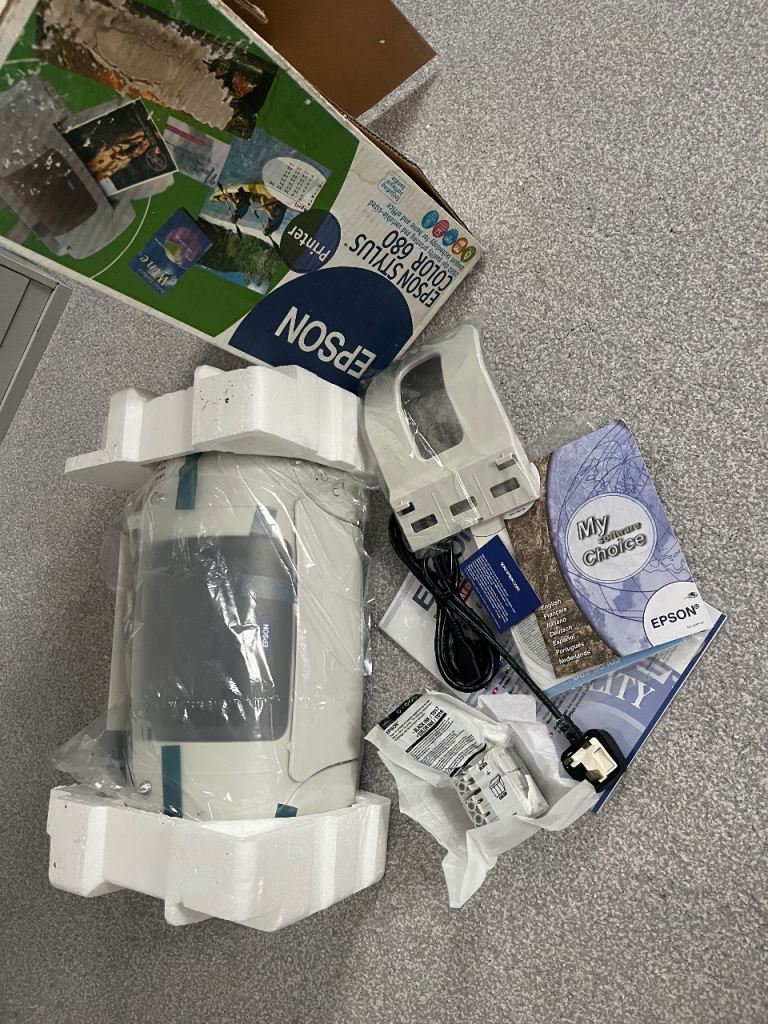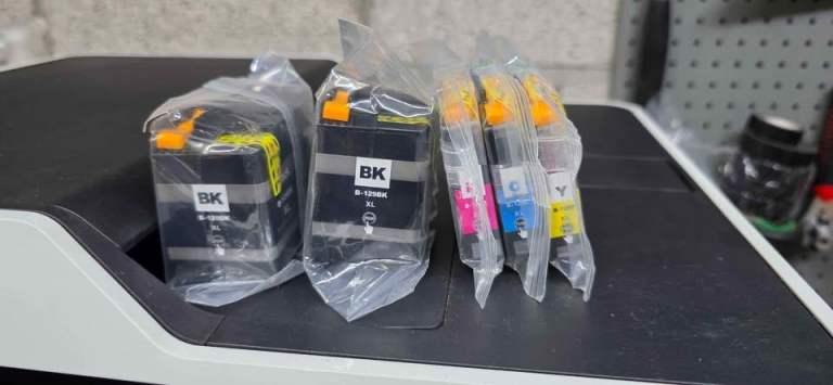 Come with half of inks installed and set of brand new ones, power and USB cable.