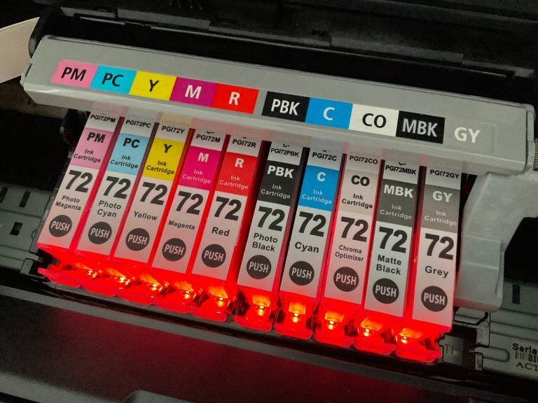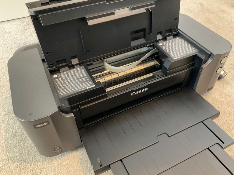 Canon Pixma Pro 10 printer for sale. Brand new set of ink cartridges fitted this week. Cannot get the PBK colour to print as shown on test page image. Therefore selling as spares or repair. No returns. Collection from Poringland only.