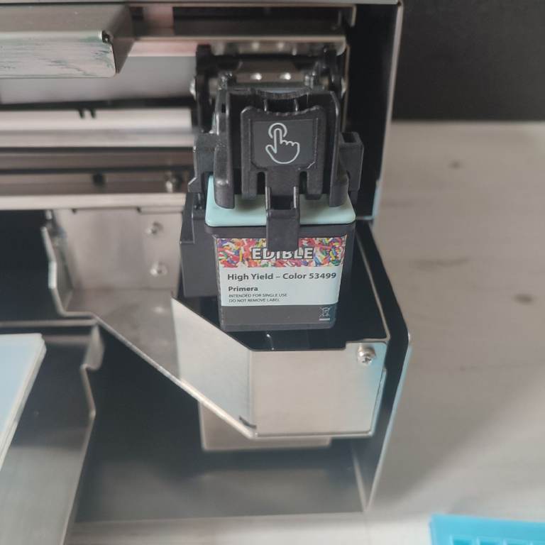 Eddie Edible Ink Printer has the printhead and ink compartment in one cartridge which gives no chance during operation to build up bacteria in ink pipes or fixed installed printheads.