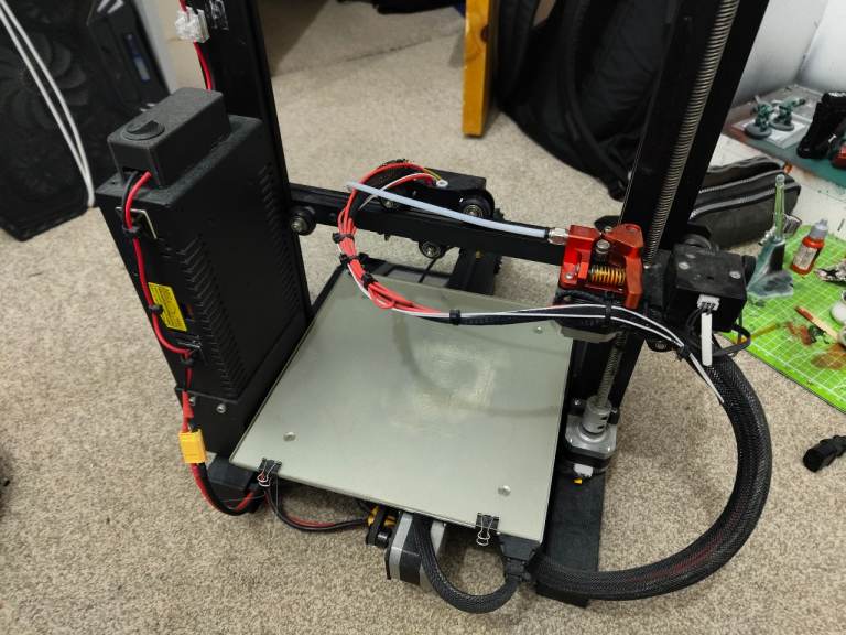 A used spool of white filament is included but it has been sat out for a while so if you would like to use it, it will need to be dried. There is a small storage compartment I had printed which will include some rubber covers for the hot end as well as a variety of nozzles. An 8gb micro SD card is also included. I would not recommend this printer for beginners as it is quite complex, would be good for someone to add to a print farm or to use as their hobby printer