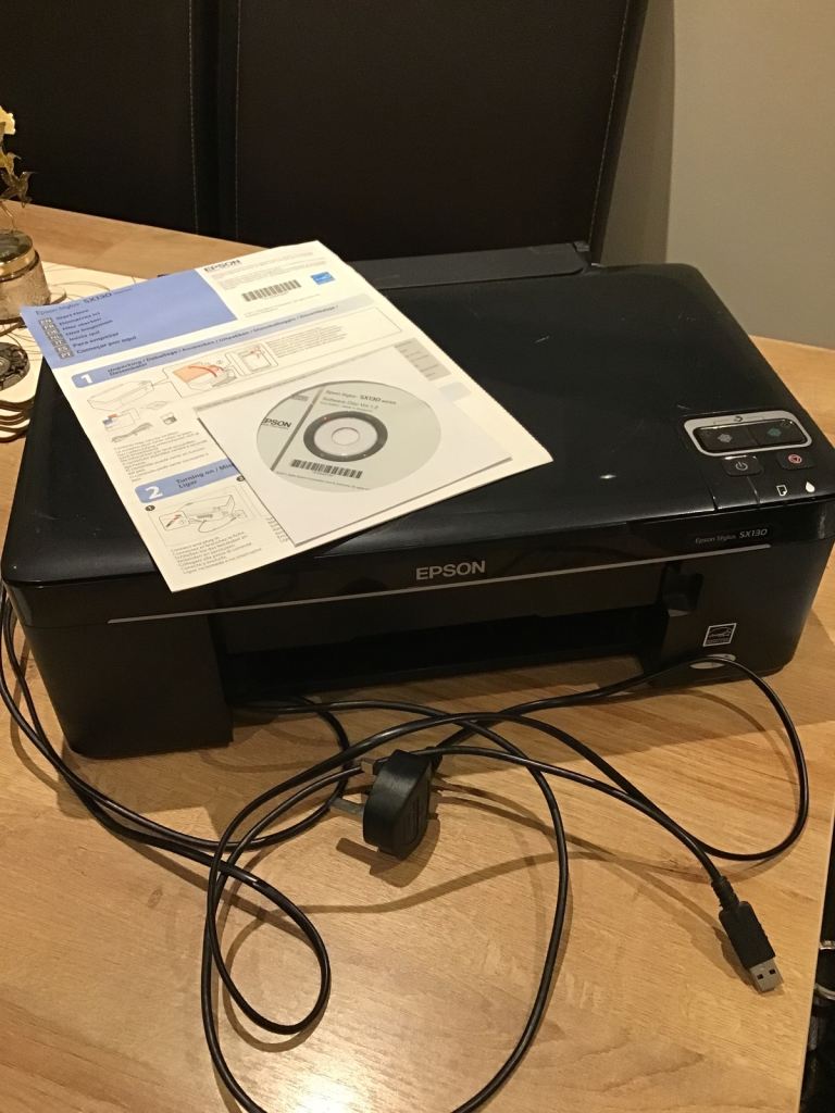 My work from home printer, no longer needed. Takes A3, A4 from trays and also other sizes from feeder. Scans documents, photos etc for digital use. Black and white or colour. I haven’t printed from it for 2 months so you will need to clean the print heads which is done via maintenance settings and using an alcohol solution to wipe the heads inside. It’s only had light usage so in very good condition.