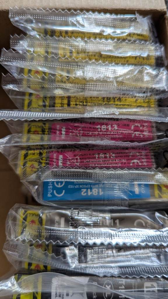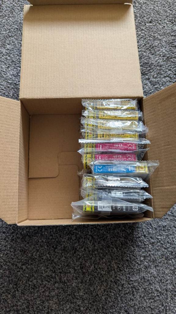 GOOD CONDITION EPSON PRINTER+SCORNER WITH INK CARTRIDGES. 4X YELLOW, 2X MAGENTA, 1X CYAN, 3X BLACK CARTAGES.
