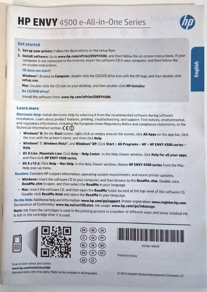 HP ENVY 4500 e-All-in-One A4 Colour Multifunction Inkjet Printer/Scanner (A9T80B)